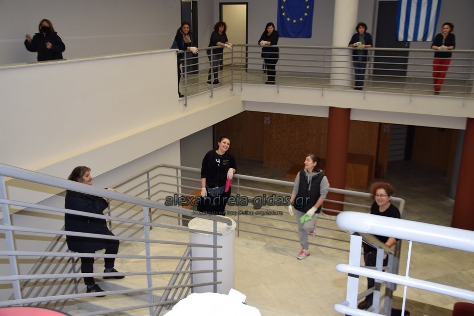Στο Πνευματικό Κέντρο Αλεξάνδρειας βρέθηκαν το πρωί της Τετάρτης 22 Απριλίου 2020 οι σχολικές καθαρίστριες του δήμου μας.