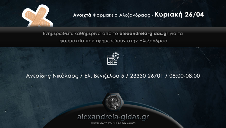 ΤΟΠΙΚΑ 26 Απριλίου, 2020 posted by admin Share Ποιο φαρμακείο είναι ανοιχτό σήμερα Κυριακή στην Αλεξάνδρεια Αλεξάνδρεια: Αφήστε μια απάντηση Ακύρωση απάντησηςΗ ηλ. διεύθυνση σας δεν δημοσιεύεται. Τα υποχρεωτικά πεδία σημειώνονται με *Σχόλιο * Όνομα Email Ιστότοπος Αποθήκευσε το όνομά μου, email, και τον ιστότοπο μου σε αυτόν τον πλοηγό για την επόμενη φορά που θα σχολιάσω.