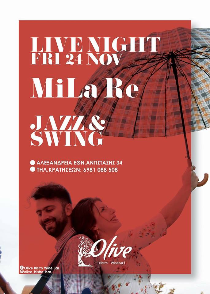 Την Παρασκευή 24 Νοεμβρίου οι MiLa Re θα επιστρέψουν στο OLIVE για μία ακόμα όμορφη βραδιά ζωντανής μουσικής.