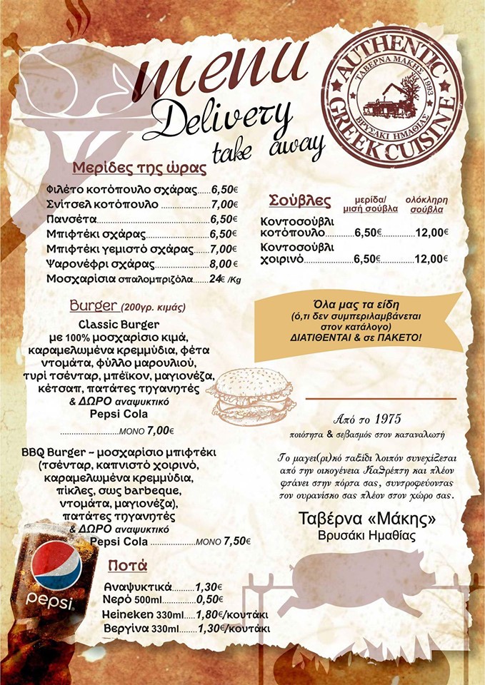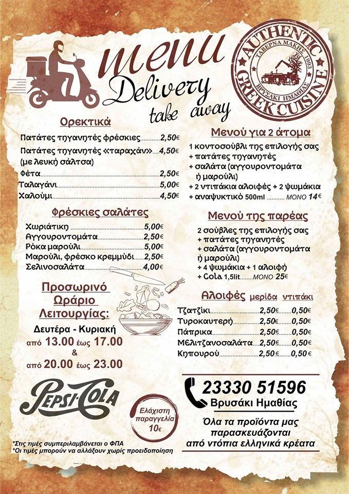H οικογενειακή ταβέρνα ΜΑΚΗΣ στο Βρυσάκι επέστρεψε στην καθημερινότητά μας λειτουργώντας με delivery και take a way!