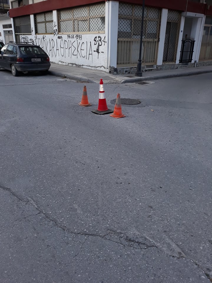 Συγκεκριμένα στη στροφή στην Αλ. Παπάγου από την Βιζυηνού, έχει υποχωρήσει το έδαφος και η ΔΕΥΑ Αλεξάνδρειας τοποθέτησε κώνους για να προσέξουν οδηγοί και πεζοί.