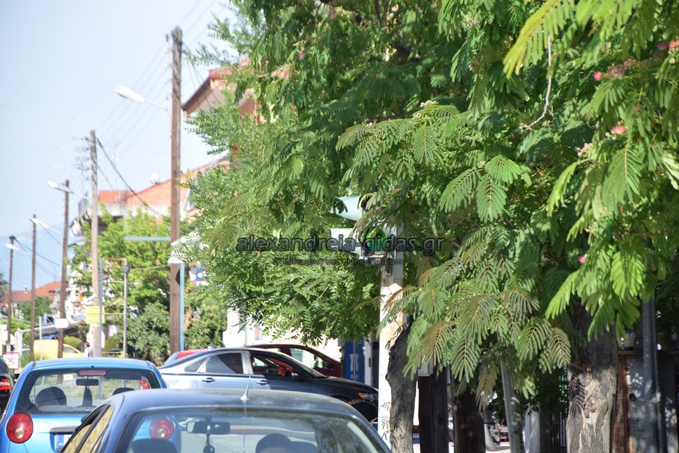 Με κατεύθυνση από την Αλεξάνδρεια προς τη Βέροια στην οδό Ελ. Βενιζέλου, το πράσινο δεν λειτουργεί στο πάνω φανάρι ενώ αυτό που είναι στα δεξιά των οδηγών είναι “κρυμμένο” από τα δέντρα όπως θα δείτε και στις εικόνες παρακάτω.