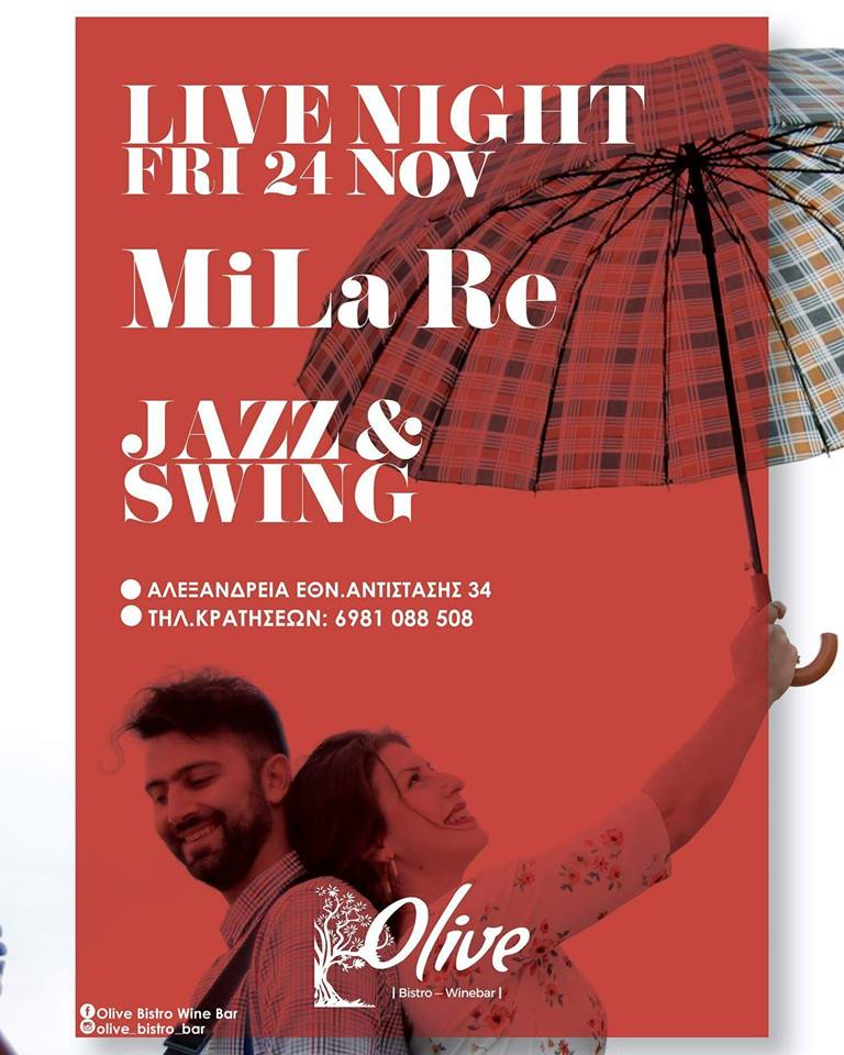 Οι MiLa Re με jazz και swing ακούσματα επιστρέφουν και συντροφιά με καλή διάθεση αλλά και τις υπέροχες γεύσεις του OLIVE μας υπόσχονται ένα υπέροχο βράδυ!