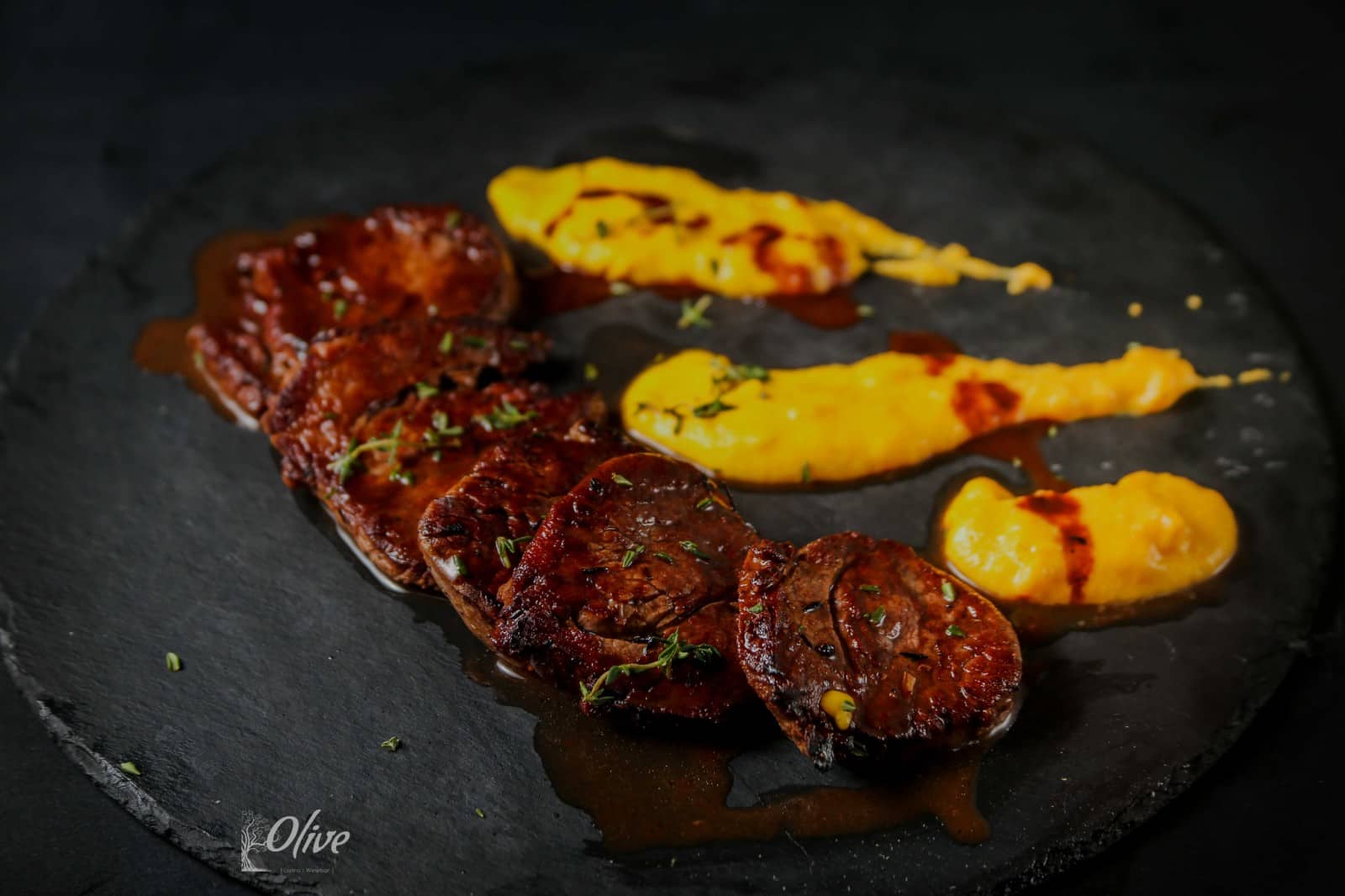 Φιλετάκια μοσχαρίσια σοτέ με πουρέ καρότου