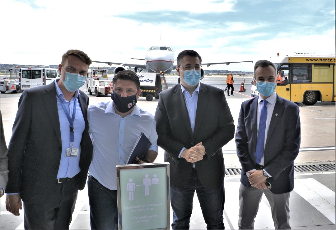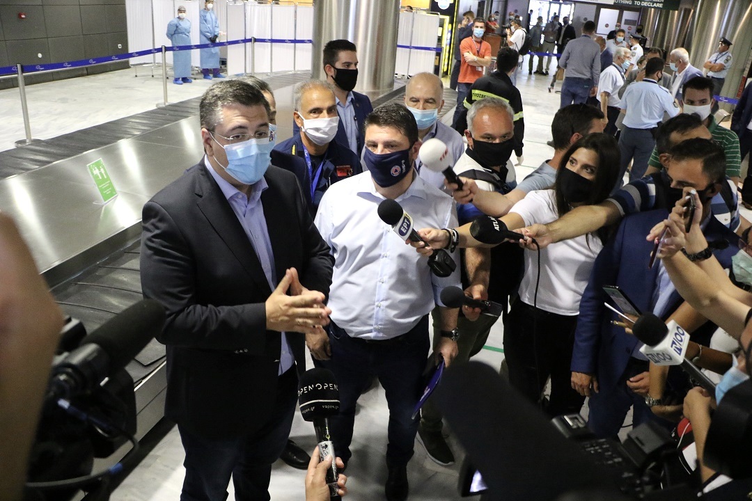 Τους επιβάτες της πρώτης πτήσης που προσγειώθηκε στο αεροδρόμιο «Μακεδονία» από το εξωτερικό υποδέχτηκε σήμερα ο Περιφερειάρχης Κεντρικής Μακεδονίας Απόστολος Τζιτζικώστας, με τον Υφυπουργό Πολιτικής Προστασίας και Διαχείρισης Κρίσεων Νίκο Χαρδαλιά και τον Δήμαρχο Θεσσαλονίκης Κωνσταντίνο Ζέρβα.
