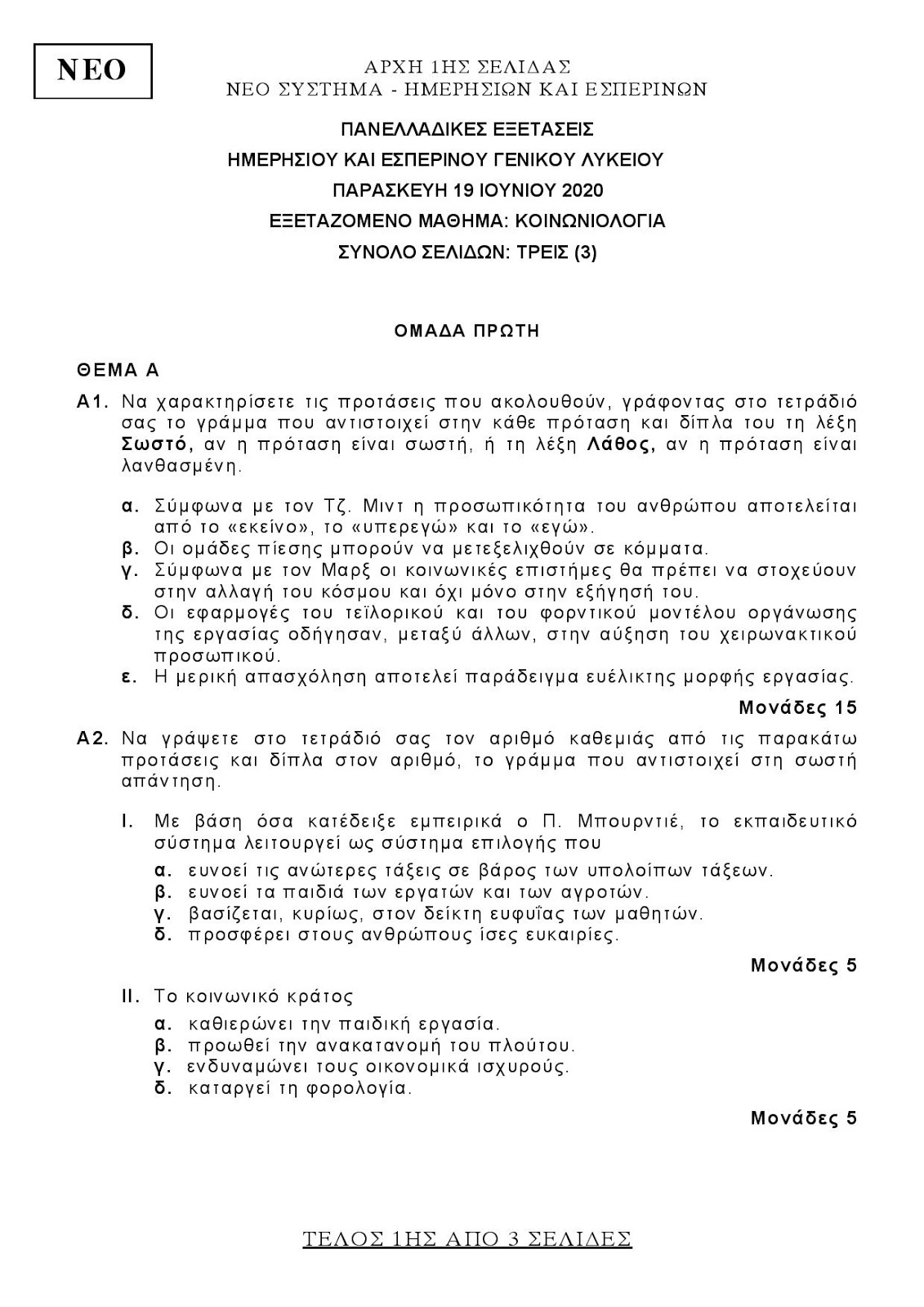 Δείτε το σημερινό θέμα το μάθημα στο μάθημα της Κοινωνιολογίας:
