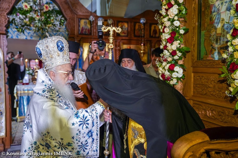 Ευγνωμονώ όλους τους παρόντες στη μικρο-πανήγυρη του τόπου μας, αλλά και τους αποστείλαντας ευχές αγίους αρχιερείς: Κυθήρων κ.Σεραφείμ, Κίτρους κ.Γεώργιο και Δράμας κ.Παύλο, ο οποίος προσέθηκε στις ευχές του τη φράση: “από πολλών ετών είσαι ο ηγούμενος και ο άνθρωπος που ανέστησε τον ιερό αυτό τόπο. Στην ουσία έμενε μόνον να γίνει το τυπικό μέρος”.