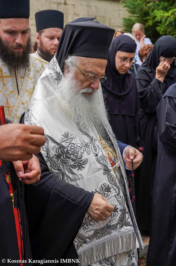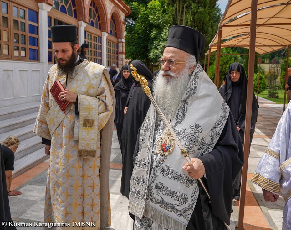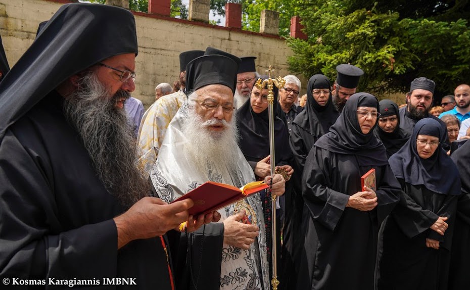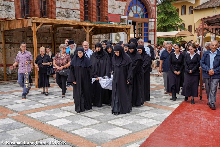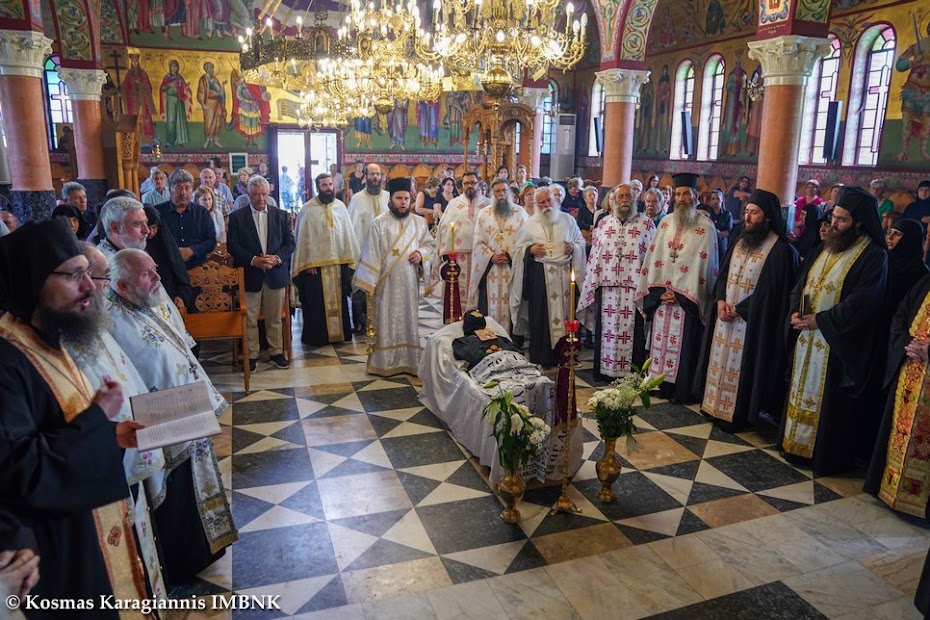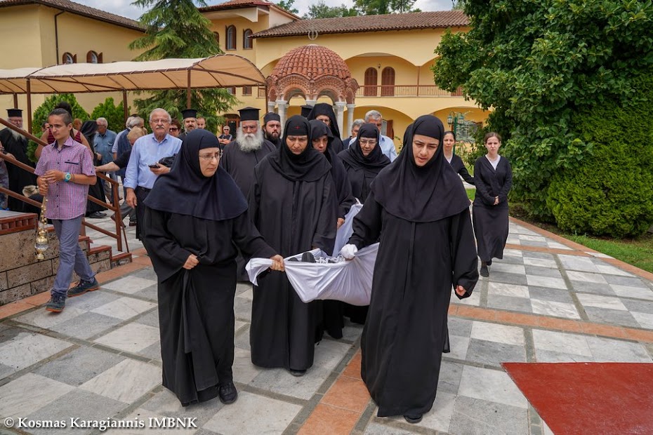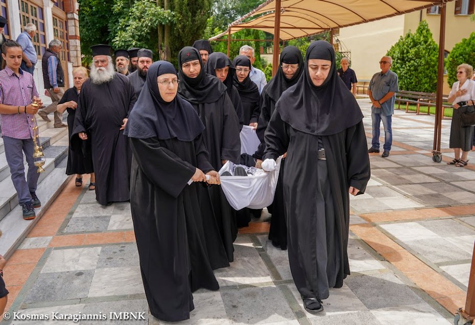 Στην εξόδιο ακολουθία προεξήρχε ο Σεβασμιώτατος Μητροπολίτης Βεροίας, Ναούσης και Καμπανίας κ. Παντελεήμων, με τη συμμετοχή κληρικών και μοναζουσών της Ιεράς Μητροπόλεως μας αλλά και άλλων ομόρων Ιερών Μητροπόλεων.