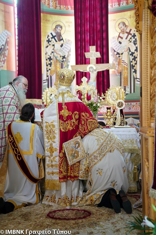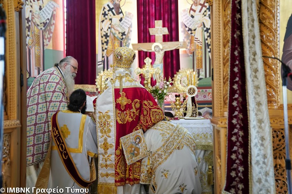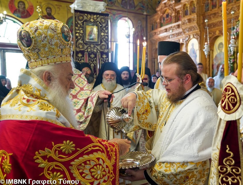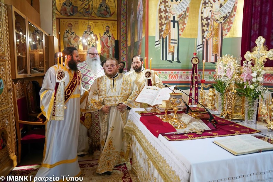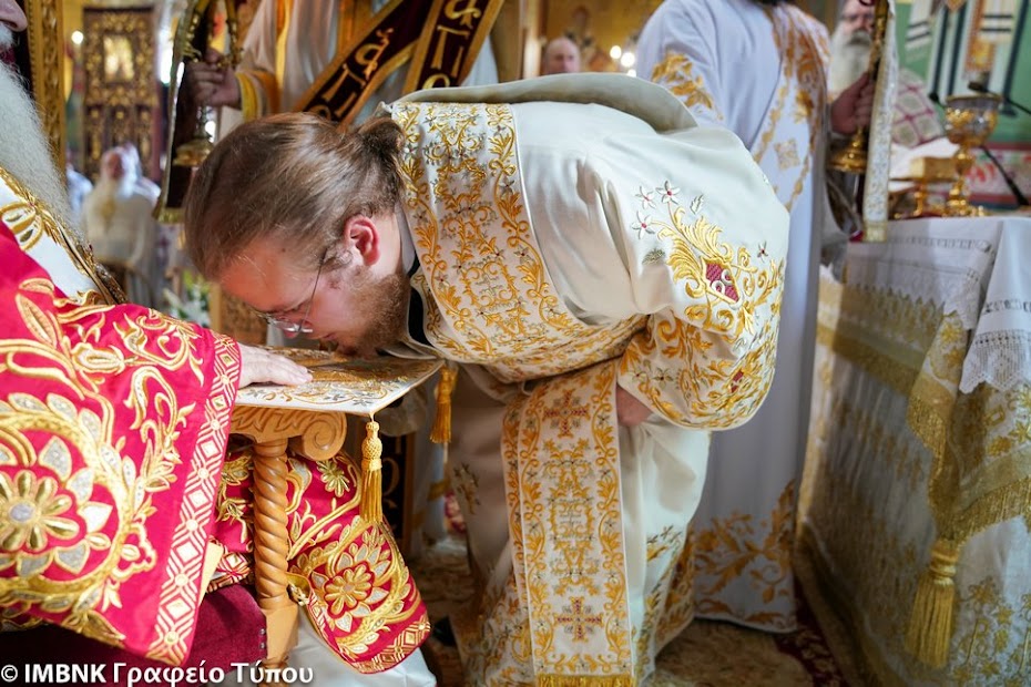 Αὐτή, λοιπόν, τήν ἡμέρα, κατά τήν ὁποία ἡ τοπική μας Ἐκκλησία ἑορτάζει τή μνήμη της στήν πανηγυρίζουσα ὁμώνυμη Ἱερά Μονή της στέκεσαι ἐνώπιον τοῦ Ἱεροῦ Βήματος γιά νά ἐνδυθεῖς καί σύ τόν Χριστό. Διότι ὁ Χριστός εἶναι ὁ Μέγας Ἀρχιερεύς καί αὐτοῦ διάκονος θά γίνεις ἀπό σήμερα, πραγματοποιώντας τήν ἐπιθυμία καί τόν πόθο, τόν ὁποῖο ἀπό πολλά χρόνια καλλιεργοῦσες στήν ψυχή σου. Θά γίνεις σέ λίγο διάκονος τοῦ Χριστοῦ, διάκονος τῆς Ἐκκλησίας του, ἐνδυόμενος διά τῶν χειρῶν τοῦ Ἐπισκόπου σου τόν Χριστό. Διότι ἡ χάρη τῆς ἱερωσύνης, τῆς ὁποίας τόν πρῶτο βαθμό θά λάβεις διά τῆς ἐπικλήσεως τοῦ Παναγίου Πνεύματος, πού θά κατέλθει γιά νά ἀναπληρώσει τά ἐλλείποντα καί νά σέ καταστήσει ἄξιο διάκονο τῆς Ἐκκλησίας, θά σέ ἐνδύσει μέ τόν Χριστό.