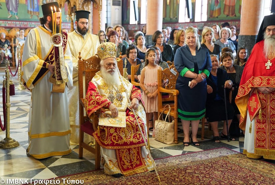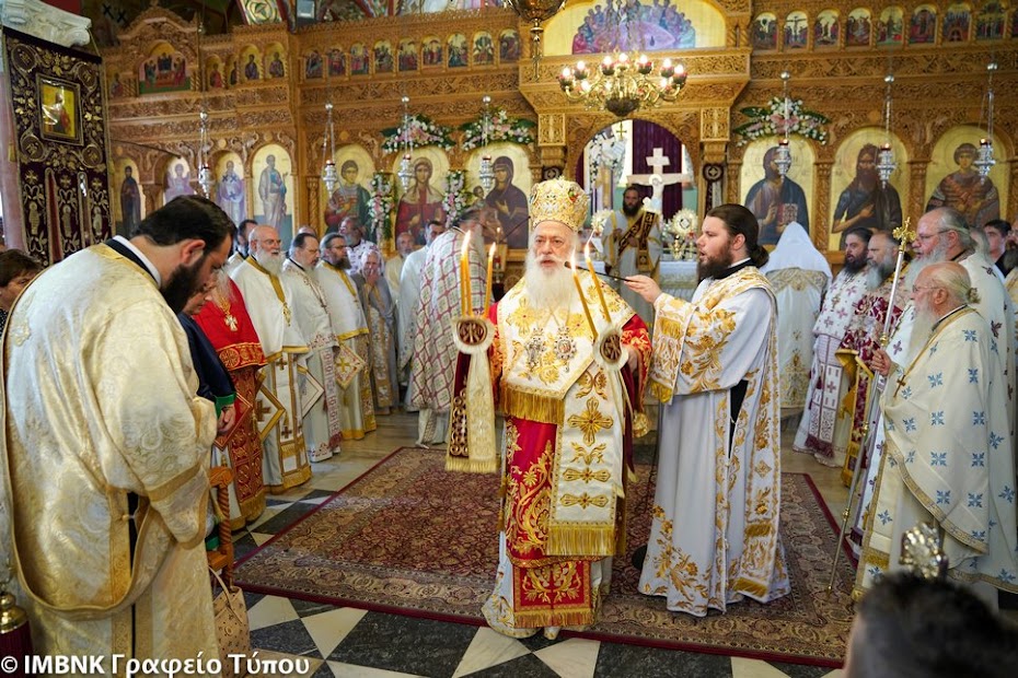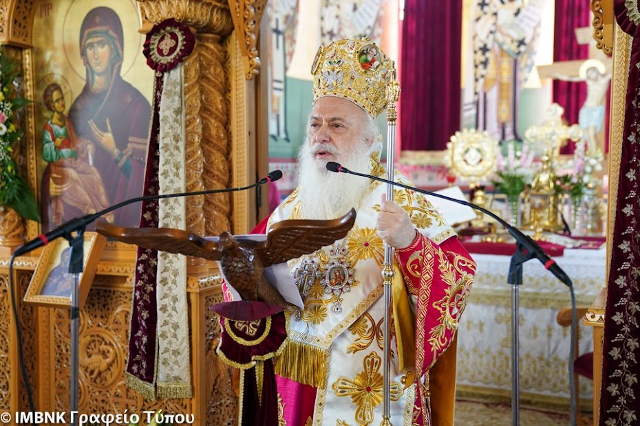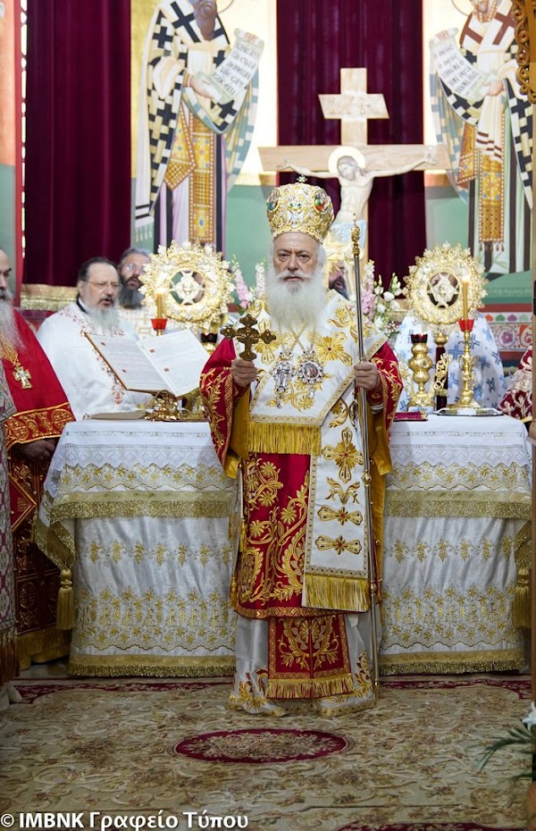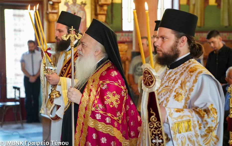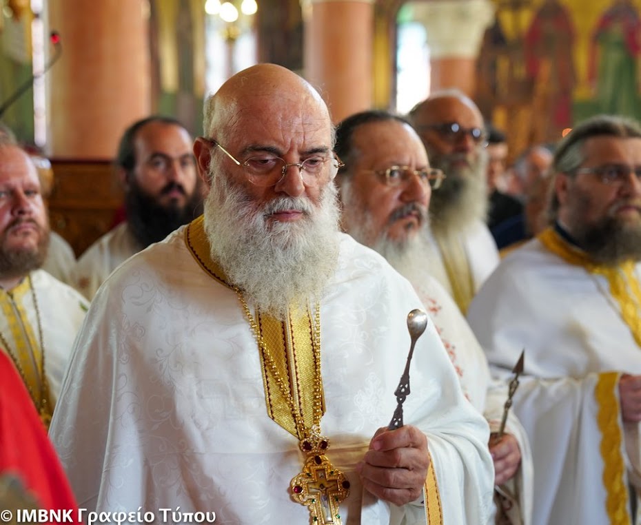 Και καθώς ατενίζω το Ιερό Θυσιαστήριο και την αγία κόγχη που το περιβάλλει, το βλέμμα μου σταματά σε μία ιερή μορφή. Το ιεροπρεπές του σχήματος, το αρχιερατικό ωμοφόριο, τα ευλογημένα άμφια και ο κεκοσμημένος στέφανος στην ιερά κεφαλή παραπέμπουν σε κάτι υπερβατικό, ουράνιο. Παρά ταύτα, ανήκει στην γη αλλά έχει λάβει από τον Θεό το χάρισμα καθώς υψώνει τα χέρια του να κατεβάζει τον ουρανό στην γη και να μεταποιεί τους γήινους ανθρώπους σε λειτουργούς των ουρανίων μυστηρίων. Είναι ο Επίσκοπος, ο Μητροπολίτης και Ποιμενάρχης της τοπικής μας Εκκλησίας. Ακόμη από τα χρόνια της παιδικής μου ηλικίας, αυτή ήταν η εικόνα που είχα για τον σεβαστό Γέροντα μου. Πάντοτε τον έβλεπα μπροστά στην Αγία Τράπεζα να λειτουργεί και να αγιάζει το ποίμνιο. Και αυτήν την εικόνα είχα την μεγάλη ευλογία να εντυπώνω μέσα μου και να αποτυπώνω στα τέσσερα αυτά χρόνια που μου εμπιστεύθηκε την διακονία να τον ακολουθώ ως μέλος του γραφείου τύπου στις πολυάριθμες λατρευτικές του πράξεις. Πάντοτε γαλήνιος, προσηλωμένος, ενίοτε μεταρσιωμένος, προσηνής στο ποίμνιο, φλογερός στο λόγο, ακάματος στην ψαλμωδία, ποιμένας, πατέρας, Επίσκοπος.