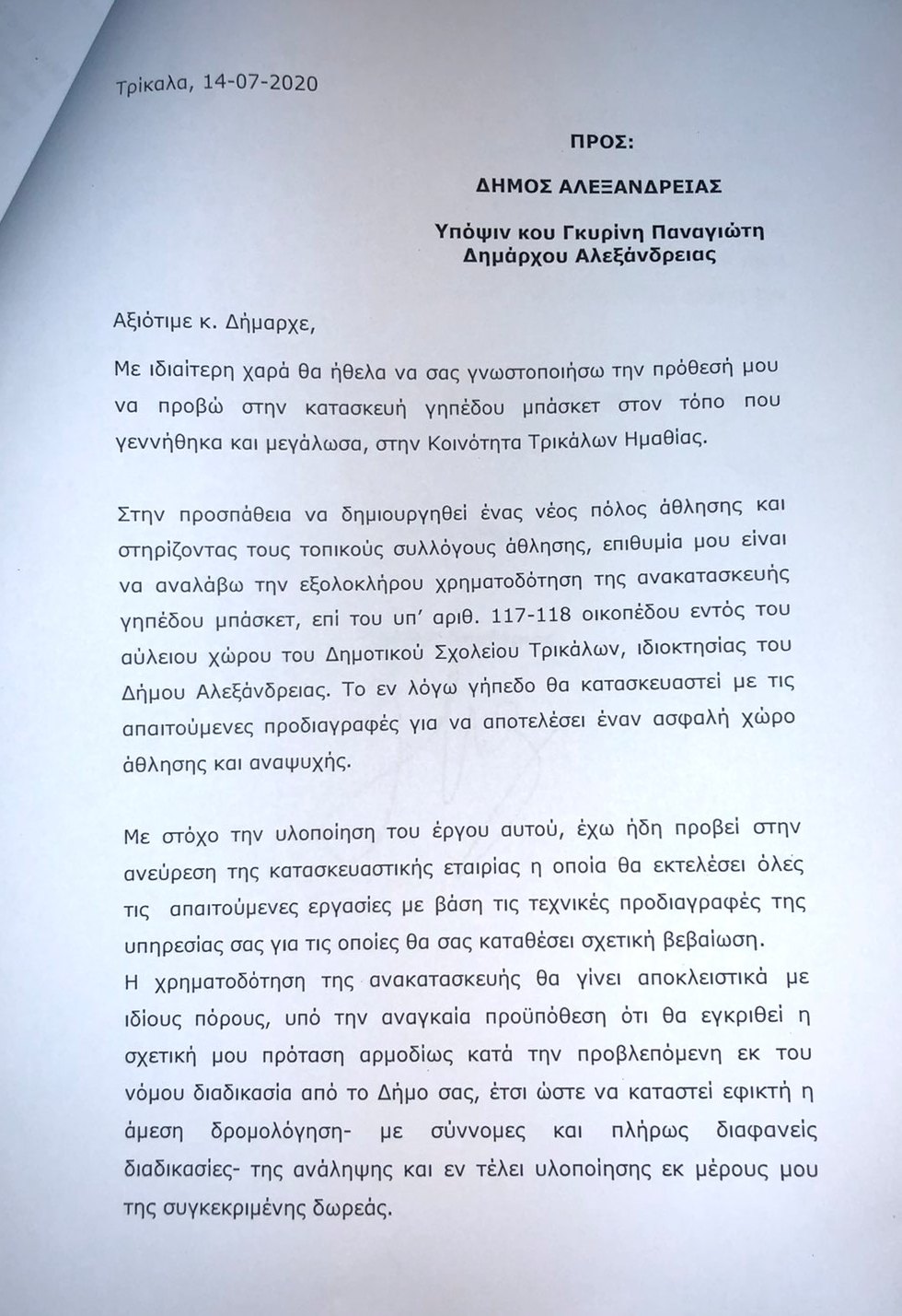 Σας παρουσιάζουμε παρακάτω εικόνες από το νέο γήπεδο και την επιστολή του κόουτς στον δήμαρχο Αλεξάνδρειας για το θέμα:
