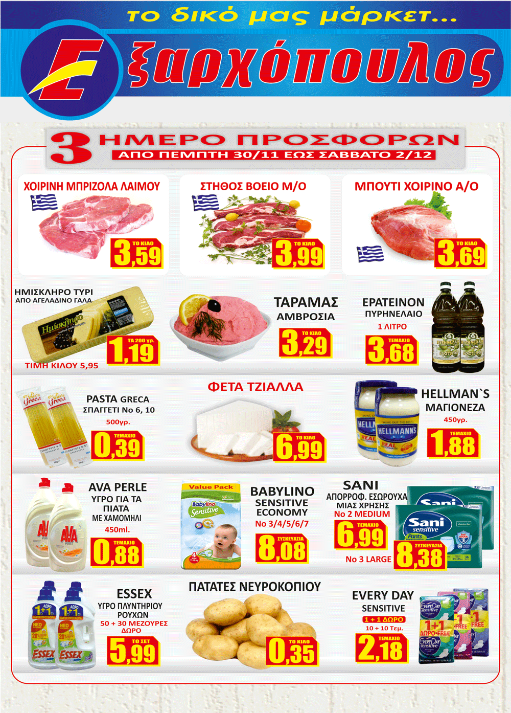 Το τοπικό σούπερ μάρκετ ΕΞΑΡΧΟΠΟΥΛΟΣ από την Πέμπτη 30 Νοεμβρίου μέχρι και το Σάββατο 2 Δεκεμβρίου προσθέτει ξανά 15 νέα έκτακτα προϊόντα στις προσφορές του καταστήματος!