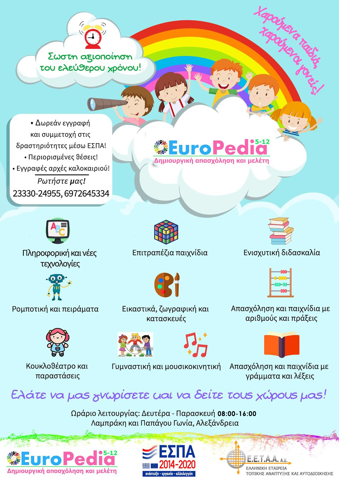 EUROPEDIA: ΚΕΝΤΡΟ ΔΗΜΙΟΥΡΓΙΚΗΣ ΑΠΑΣΧΟΛΗΣΗΣ