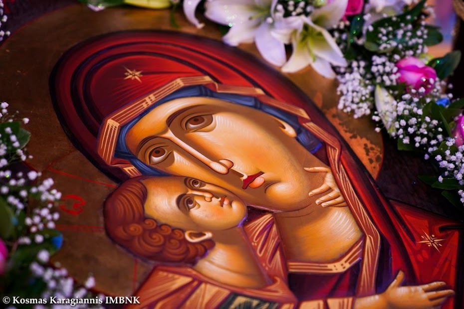 Καί τήν ζητᾶ ὄχι μόνο γιά τόν ἑαυτό του, ἀλλά καί γιά ὅλους ἐμᾶς πού συγκεντρωθήκαμε καί ἀπόψε στόν ἱερό αὐτό ναό τῆς Κοιμήσεώς της καί ψάλαμε ἐνώπιον τῆς σεπτῆς της εἰκόνος τήν ἱερά Παράκλησή της, γιά νά τῆς ἐκφράσουμε τήν εὐγνωμοσύνη καί τόν σεβασμό μας ἀλλά καί γιά νά τῆς ἐμπιστευθοῦμε τά αἰτήματα τῶν καρδιῶν μας.