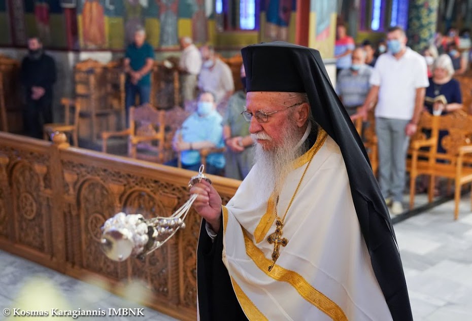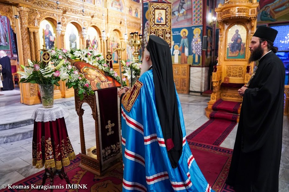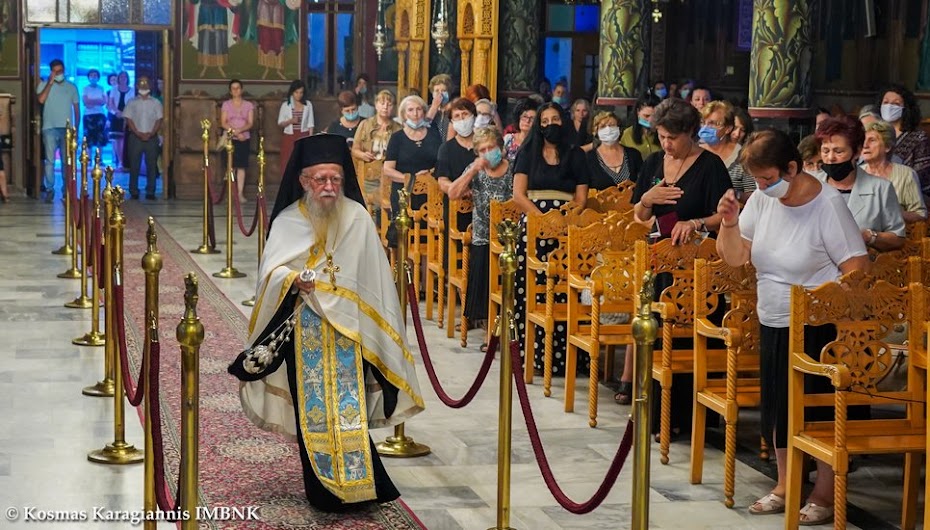 Ἰδιαιτέρως ὅμως αὐτή τήν περίοδο τοῦ Δεκαπενταυγούστου ἄς παρακαλοῦμε καί ἄς ἱκετεύουμε τήν Παναγία μας νά ἀποδιώξει καί τόν πειρασμό καί τήν ἐπήρεια τοῦ κορωνοϊοῦ πού καί πάλι μᾶς ἀπειλεῖ καί νά μᾶς προστατεύσει ἀπό τή φθορά τῆς ἀσθενείας, ὥστε νά τήν ὑμνοῦμε καί νά τήν δοξάζουμε ὡς προστάτιδα τῆς ζωῆς μας καί ὡς αἰτία τῆς σωτηρίας καί τῆς ψυχῆς καί τοῦ σώματός μας.