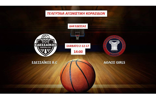 Πιο συγκεκριμένα το Σάββατο 2/12/2017 θα πραγματοποιηθούν οι εξής αγώνες: