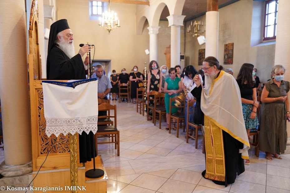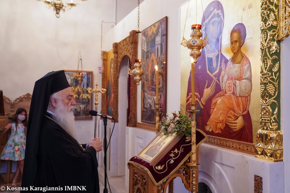 Ἰδιαίτερα αὐτή τήν περίοδο τοῦ Δεκαπενταυγούστου θά πρέπει νά ζητοῦμε ἀπό τήν Παναγία μας, πού εἶναι πρέσβειρα δική μας στόν Θεό, νά μᾶς βοηθήσει καί στό θέμα τοῦ κορωνοϊοῦ καί στό θέμα αὐτό πού ἀναζωπυρώνεται, ὅπως ἀκοῦμε, καί εἶναι ἕνας πειρασμός τόν ὁποῖο μόνο μέ τή χάρη τοῦ Θεοῦ καί τή βοήθεια τῆς Παναγίας μας θά μπορέσουμε νά τόν ξεπεράσουμε, ὥστε νά μπορέσουμε νά ἑορτάσουμε τό Πάσχα τοῦ καλοκαιριοῦ, τήν ἑορτή τῆς Κοιμήσεως τῆς Παναγίας μας.