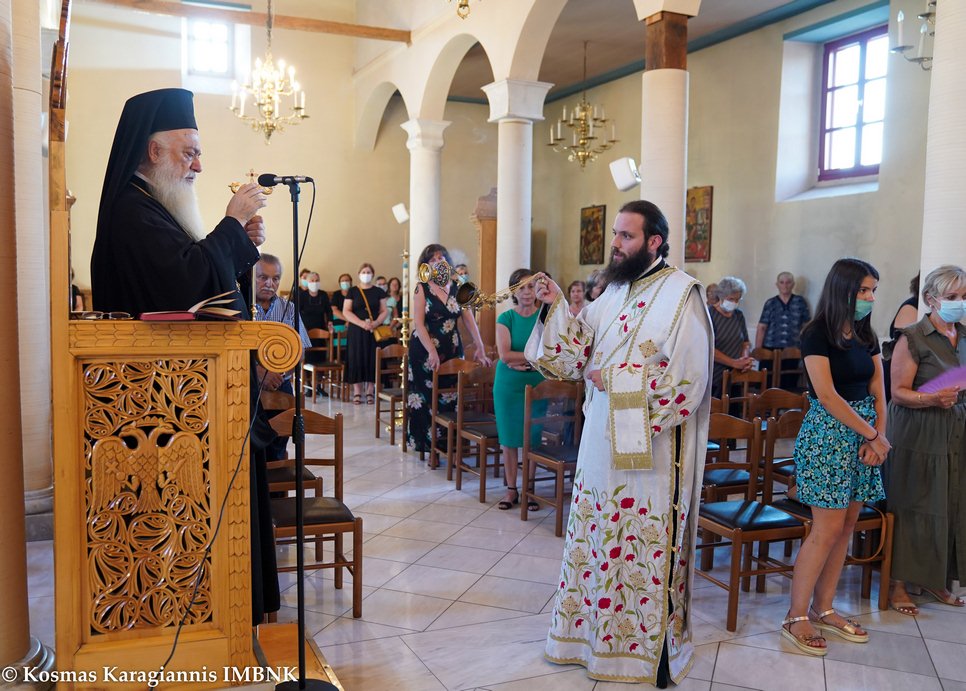 Ἰδιαίτερα αὐτή τήν περίοδο τοῦ Δεκαπενταυγούστου θά πρέπει νά ζητοῦμε ἀπό τήν Παναγία μας, πού εἶναι πρέσβειρα δική μας στόν Θεό, νά μᾶς βοηθήσει καί στό θέμα τοῦ κορωνοϊοῦ καί στό θέμα αὐτό πού ἀναζωπυρώνεται, ὅπως ἀκοῦμε, καί εἶναι ἕνας πειρασμός τόν ὁποῖο μόνο μέ τή χάρη τοῦ Θεοῦ καί τή βοήθεια τῆς Παναγίας μας θά μπορέσουμε νά τόν ξεπεράσουμε, ὥστε νά μπορέσουμε νά ἑορτάσουμε τό Πάσχα τοῦ καλοκαιριοῦ, τήν ἑορτή τῆς Κοιμήσεως τῆς Παναγίας μας.