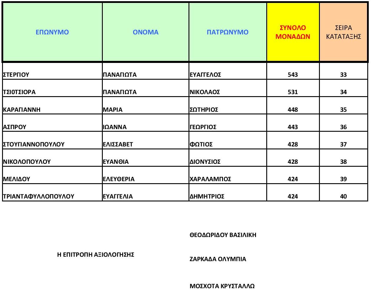 Τα τελικά αποτελέσματα έχουν ως εξής: