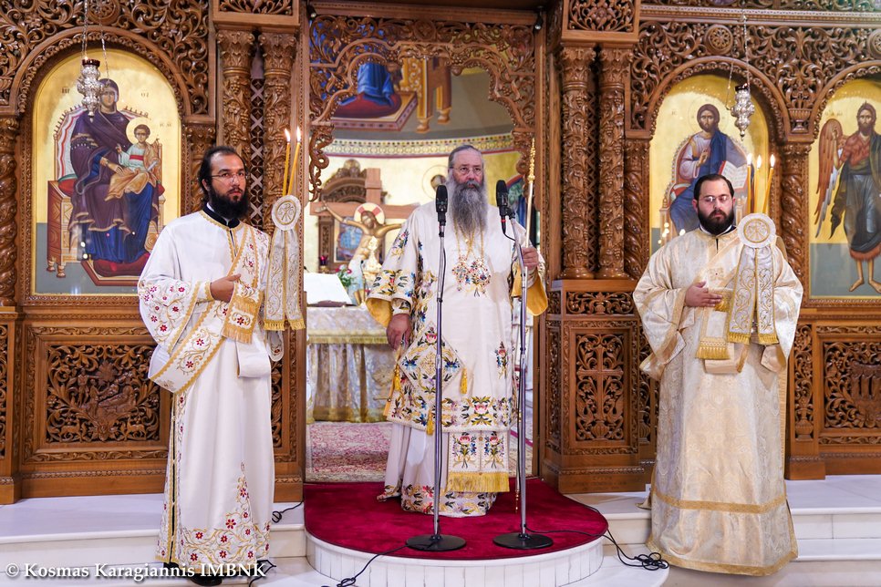 Στη διάρκεια της Θείας Λειτουργίας τελέστηκε η εις πρεσβύτερον χειροτονία του διακόνου π. Θεοδώρου Αναγνώστου, ενώ τέθηκε σε προσκύνηση η τιμία Κάρα της Αγίας Ιερουσαλήμ που φυλάσσεται στον Ιερό Ναό.