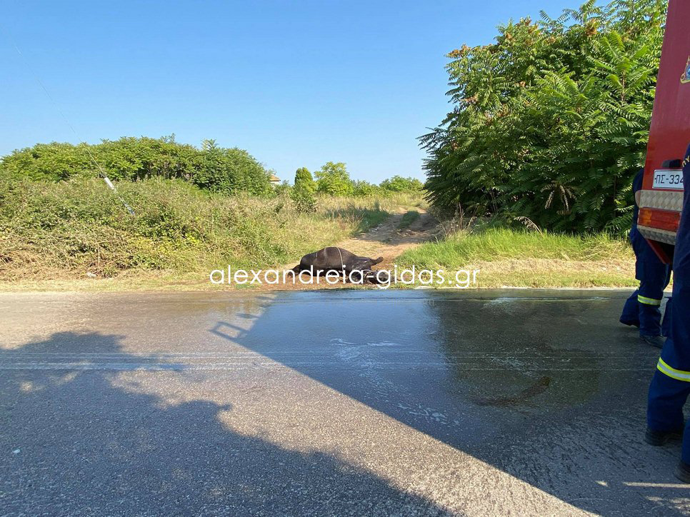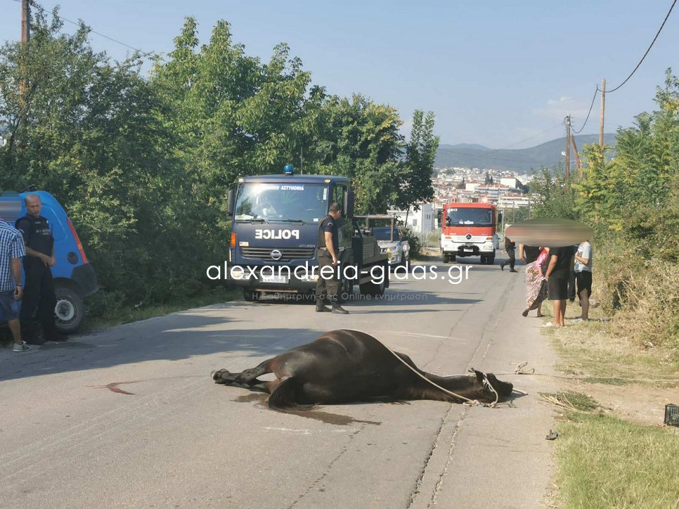 Το νεκρό άλογο περισυλλέχθηκε στη συνέχεια από την Κτηνιατρική Υπηρεσία της Αντιπεριφέρειας Ημαθίας.