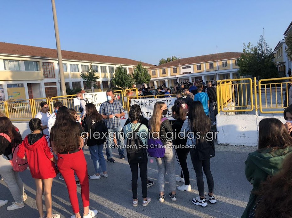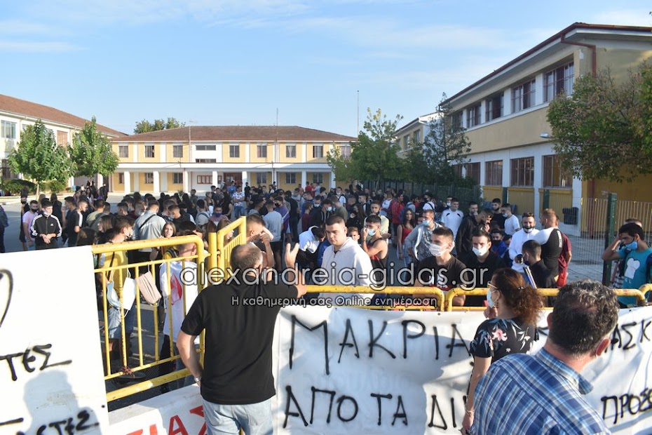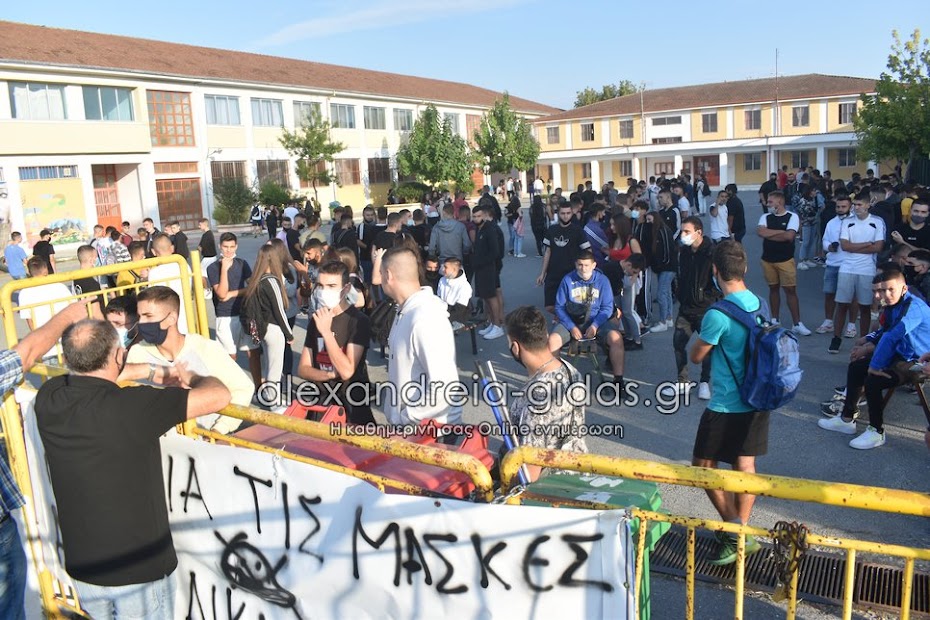 Οι μαθητές έκλεισαν το σχολεία, κρέμασαν μάσκες στα κάγκελα και διαμαρτύρονται κυρίως για τη χρήση της μάσκας στο σχολείο.