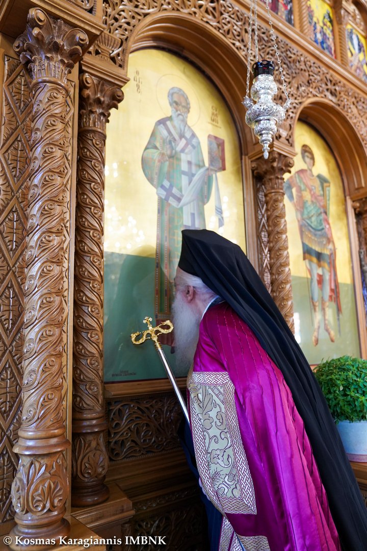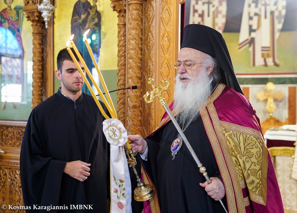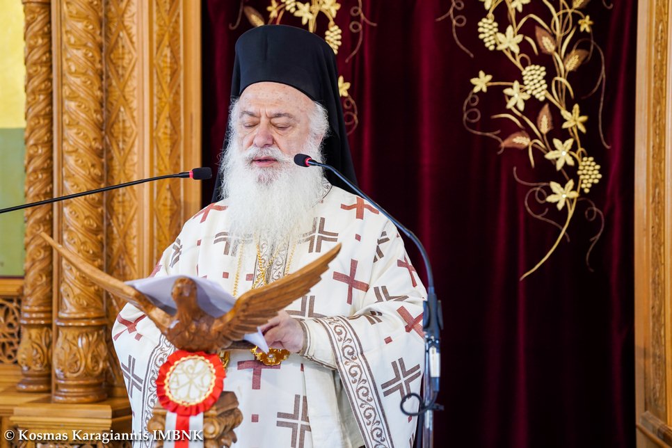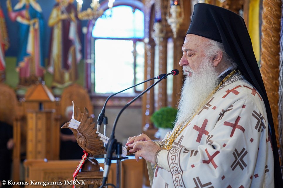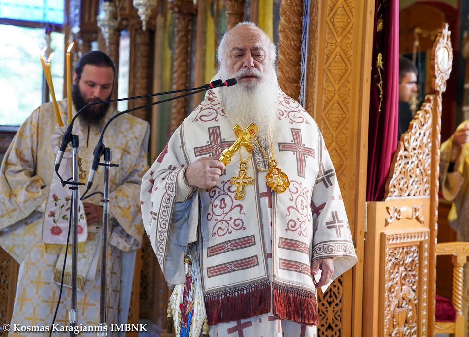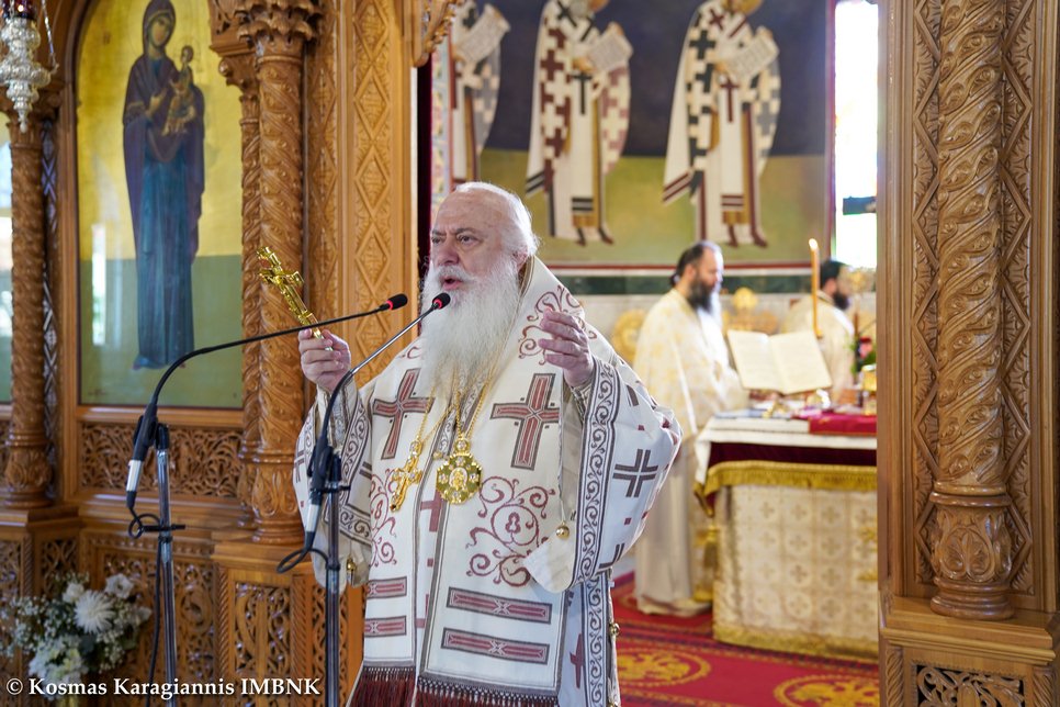 Ο Σεβασμιώτατος στην ομιλία του ανέφερε μεταξύ άλλων: «Τοῦ Σταυροῦ τῇ ὑψώσει ὕμνον μεθέορτον προσκομίσωμεν πάντες ἐν διανοίᾳ θερμῇ». Ἕναν ὕμνον μεθέορτο γιά τόν Σταυρό τοῦ Κυρίου, τήν παγκόσμιο ὕψωση τοῦ ὁποίου ἑορτάσαμε χθές, μᾶς κάλεσε ὁ ἱερός ὑμνογράφος νά προσφέρουμε ὅλοι ἀνεξαιρέτως, παράλληλα πρός τούς ὕμνους πού προσφέρουμε στόν ἑορταζόμενο σήμερα σοφό καί μεγάλο ἱεράρχη τῆς Ἐκκλησίας μας, τόν ἅγιο Συμεών, ἀρχιεπίσκοπο Θεσσαλονίκης.