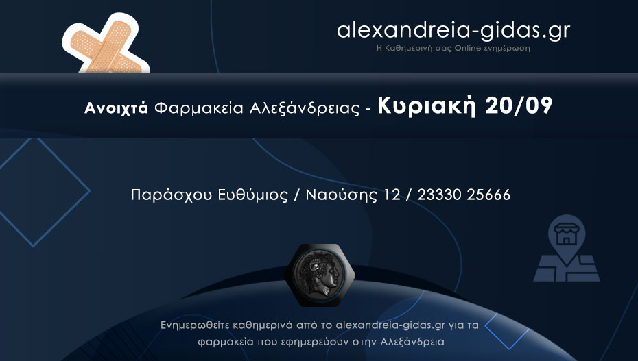 ΤΟΠΙΚΑ 20 Σεπτεμβρίου, 2020 posted by admin Share Ποιο φαρμακείο είναι ανοιχτό σήμερα Κυριακή στην Αλεξάνδρεια Αλεξάνδρεια: Αφήστε μια απάντηση Ακύρωση απάντησηςΗ ηλ. διεύθυνση σας δεν δημοσιεύεται. Τα υποχρεωτικά πεδία σημειώνονται με *Σχόλιο * Όνομα Email Ιστότοπος Αποθήκευσε το όνομά μου, email, και τον ιστότοπο μου σε αυτόν τον πλοηγό για την επόμενη φορά που θα σχολιάσω.