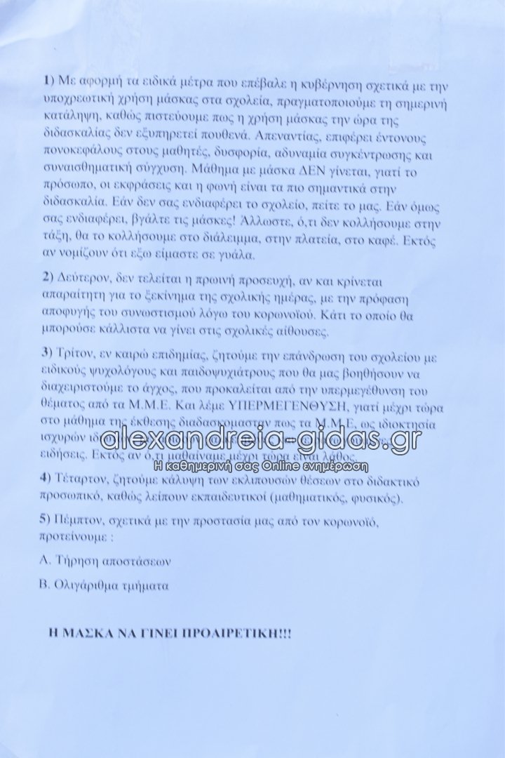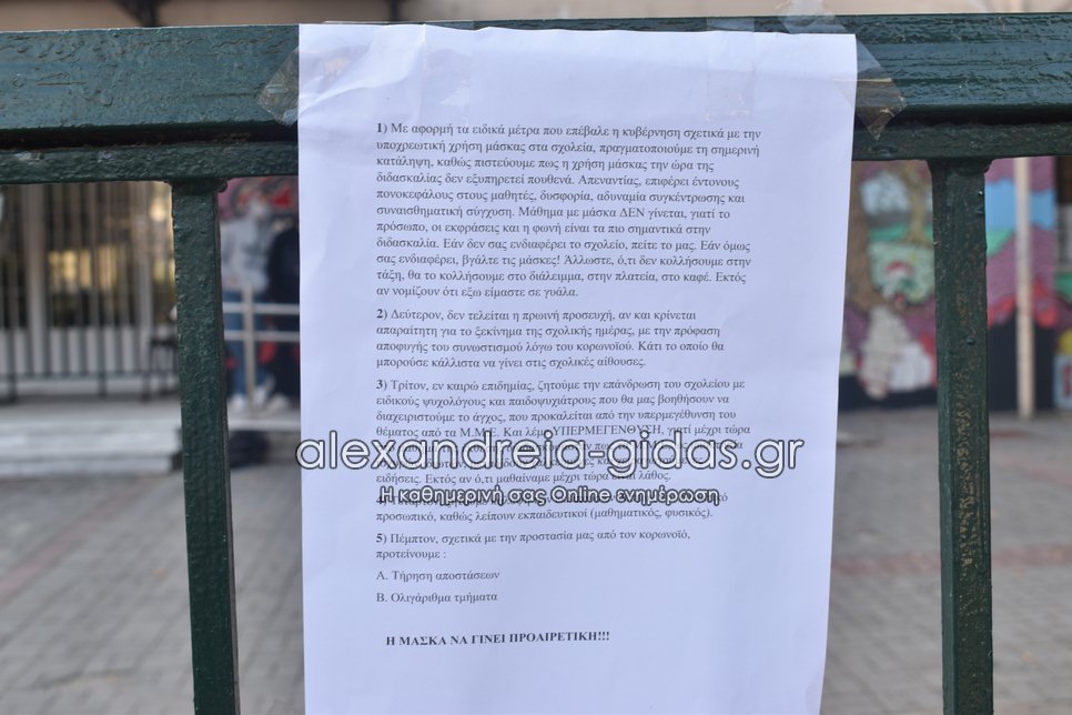 Κατάληψη στο 2ο Λύκειο Αλεξάνδρειας – έκλεισαν το σχολείο οι μαθητές για τις μάσκες