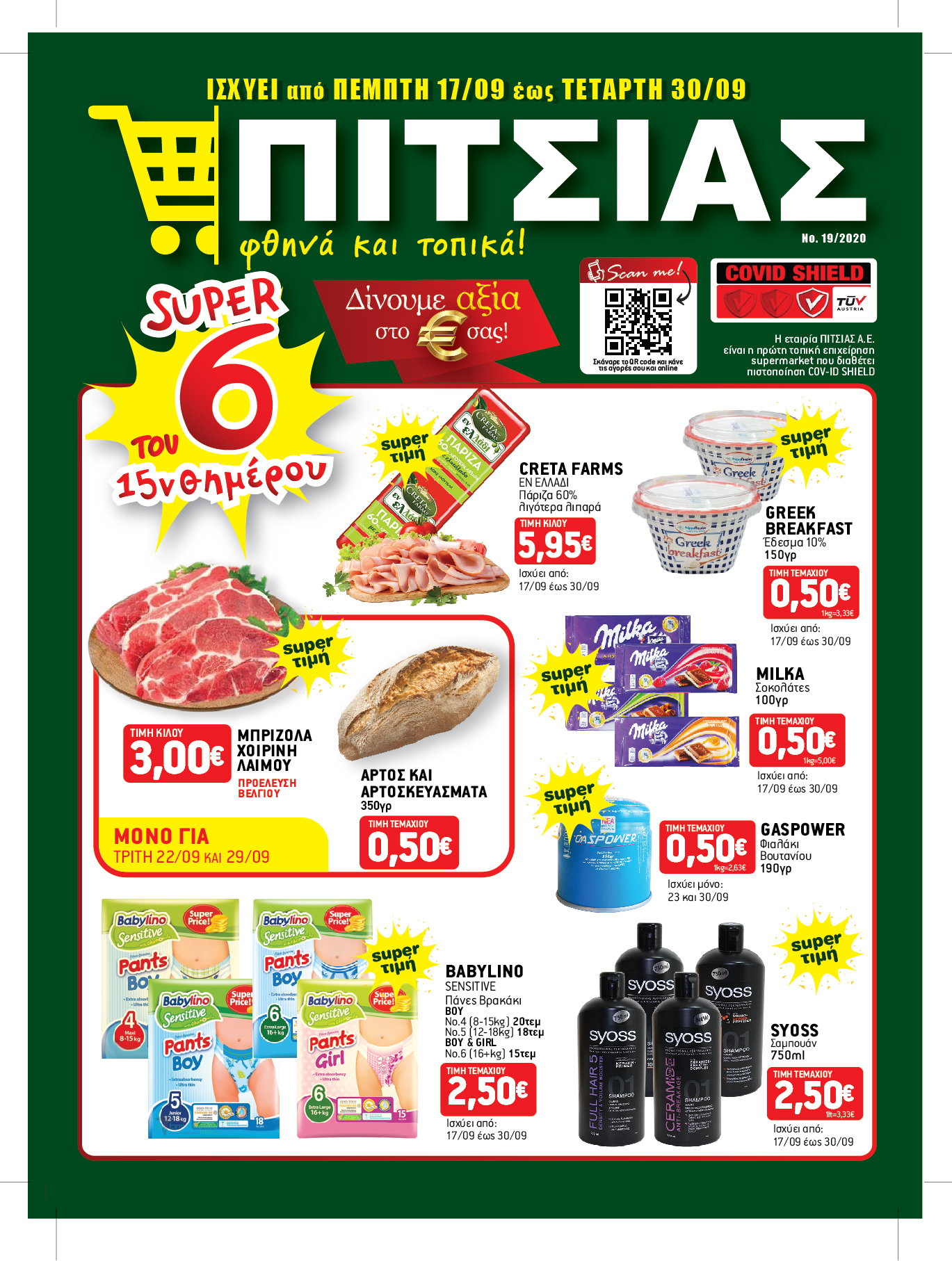 Από την Πέμπτη 17 Σεπτεμβρίου 2020 ξεκίνησαν οι ολοκαίνουριες προσφορές του σούπερ μάρκετ με νέο φυλλάδιο.