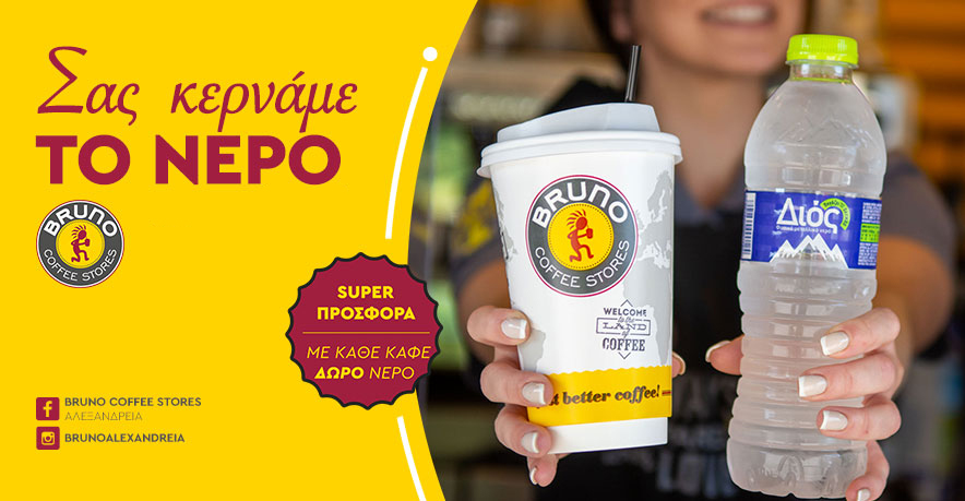 Tο BRUNO BOX στην πόλη μας, συνεχίζει τη μοναδική προσφορά του και με κάθε αγορά καφέ σας κερνάει το νερό!