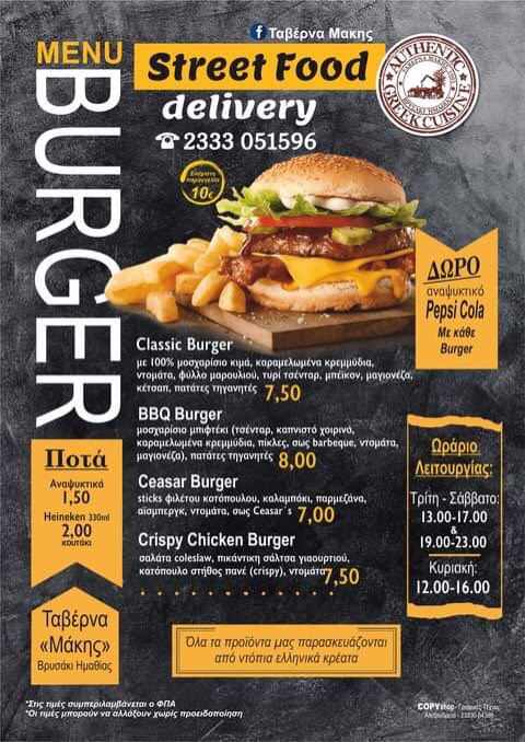 Classic και Street Food γεύσεις στον νέο κατάλογο Delivery του ΜΑΚΗ στο Βρυσάκι – δείτε!