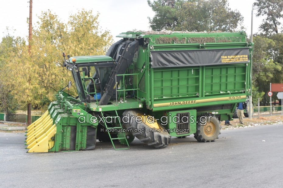 Στη στροφή για το Νησί, βαμβακοσυλλεκτική μηχανή ακινητοποιήθηκε όταν ο αριστερός άξονας το οχήματος έσπασε.