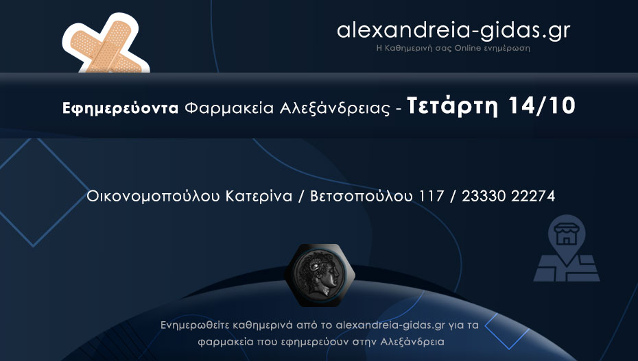 ΤΟΠΙΚΑ 14 Οκτωβρίου, 2020 posted by admin Share Ποιο φαρμακείο εφημερεύει σήμερα Τετάρτη στην Αλεξάνδρεια Αλεξάνδρεια: Αφήστε μια απάντηση Ακύρωση απάντησηςΗ ηλ. διεύθυνση σας δεν δημοσιεύεται. Τα υποχρεωτικά πεδία σημειώνονται με *Σχόλιο * Όνομα Email Ιστότοπος Αποθήκευσε το όνομά μου, email, και τον ιστότοπο μου σε αυτόν τον πλοηγό για την επόμενη φορά που θα σχολιάσω.
