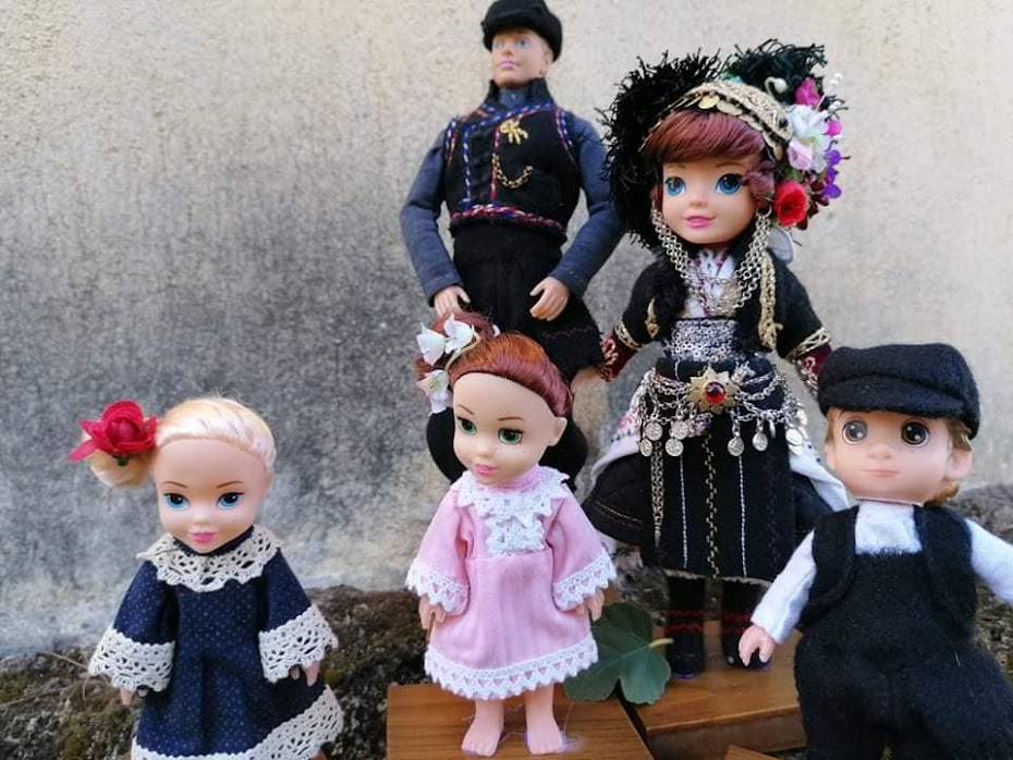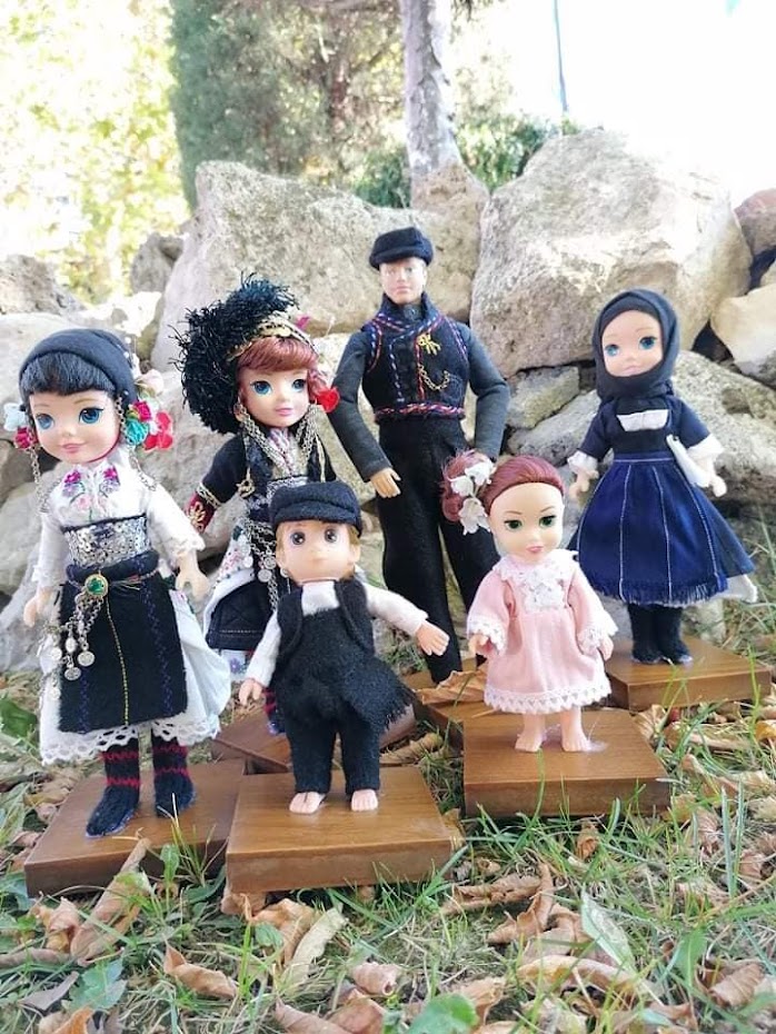 Μια συλλογή από χειροποίητα αντίγραφα της παραδοσιακής φορεσιάς των γυναικών και των αντρών του Ρουμλουκιού σε μικρογραφία.