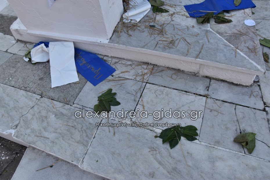 Λίγες ημέρες μετά τις εκδηλώσεις Απελευθέρωσης στην πόλη της Αλεξάνδρειας, οι πολίτες αντίκρισαν άσχημες εικόνες στο Ηρώο το πρωί της Παρασκευής 23 Οκτωβρίου 2020.