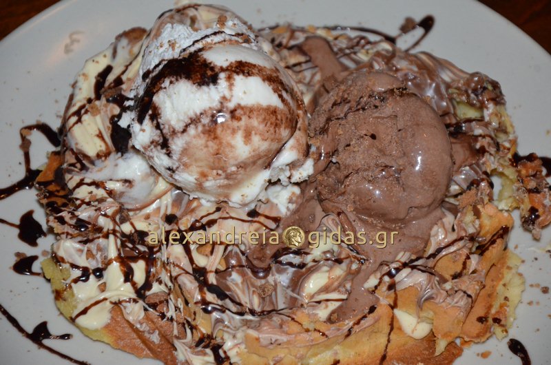 - Βάφλα ανάμεικτη με παγωτό βανίλια και σοκολάτα