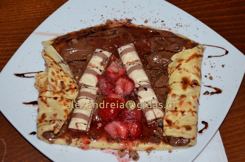 - Κρέπα με φράουλα και bueno και πραλίνα σοκολάτας