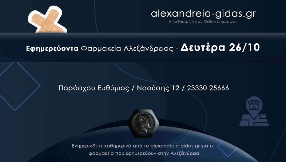 ΤΟΠΙΚΑ 26 Οκτωβρίου, 2020 posted by admin Share Ποιο φαρμακείο εφημερεύει σήμερα Δευτέρα στην Αλεξάνδρεια Αλεξάνδρεια: Αφήστε μια απάντηση Ακύρωση απάντησηςΗ ηλ. διεύθυνση σας δεν δημοσιεύεται. Τα υποχρεωτικά πεδία σημειώνονται με *Σχόλιο * Όνομα Email Ιστότοπος Αποθήκευσε το όνομά μου, email, και τον ιστότοπο μου σε αυτόν τον πλοηγό για την επόμενη φορά που θα σχολιάσω.