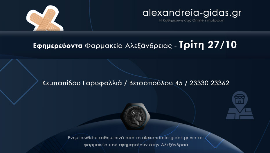 ΤΟΠΙΚΑ 27 Οκτωβρίου, 2020 posted by admin Share Ποιο φαρμακείο εφημερεύει σήμερα Τρίτη στην Αλεξάνδρεια Αλεξάνδρεια: Αφήστε μια απάντηση Ακύρωση απάντησηςΗ ηλ. διεύθυνση σας δεν δημοσιεύεται. Τα υποχρεωτικά πεδία σημειώνονται με *Σχόλιο * Όνομα Email Ιστότοπος Αποθήκευσε το όνομά μου, email, και τον ιστότοπο μου σε αυτόν τον πλοηγό για την επόμενη φορά που θα σχολιάσω.