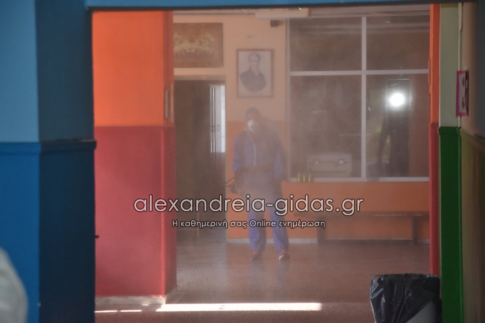 Κατά τη διάρκεια της απολύμανσης στο σχολείο βρέθηκε ο αντιδήμαρχος Παιδείας του δήμου Αλεξάνδρειας Στέφανος Δριστάς.