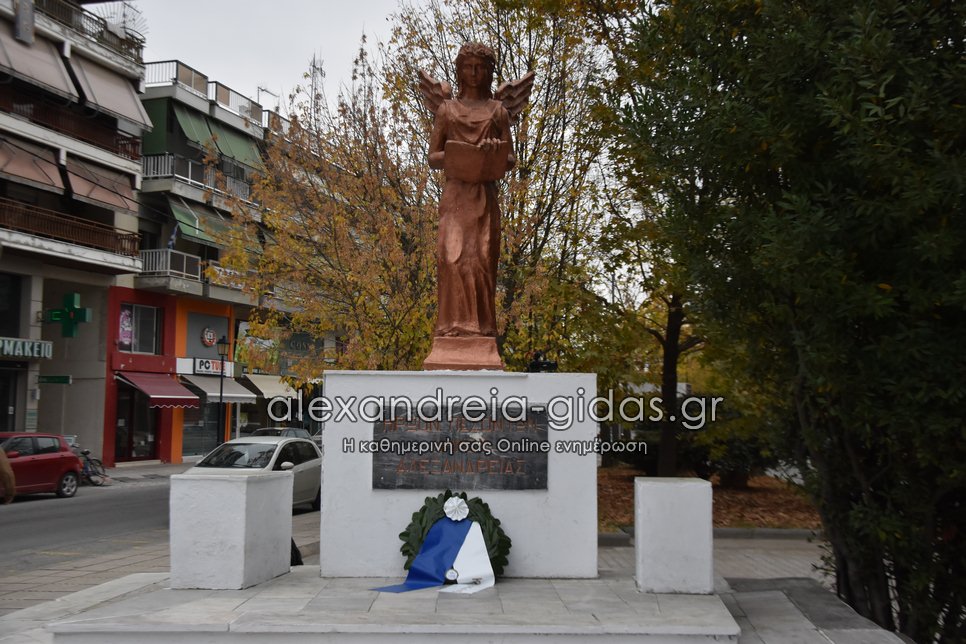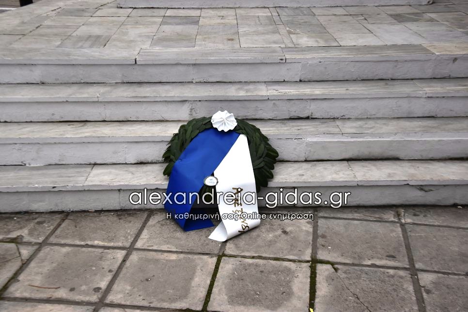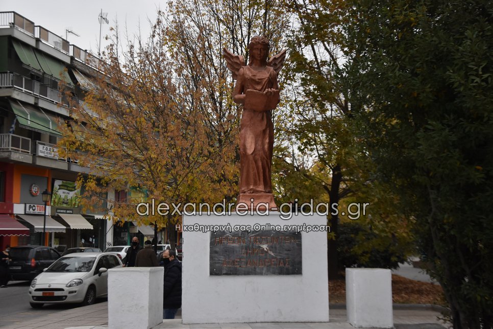 Ένα στεφάνι μόνο από τον δήμαρχο Αλεξάνδρειας κατατέθηκε σήμερα Τρίτη 17 Νοεμβρίου 2020 στο Ηρώο για την επέτειο του Πολυτεχνείου.