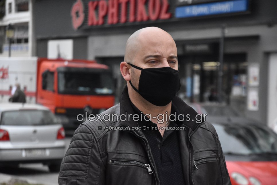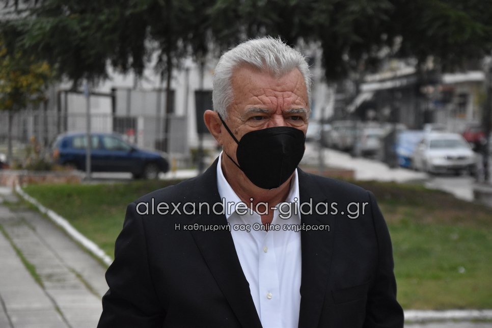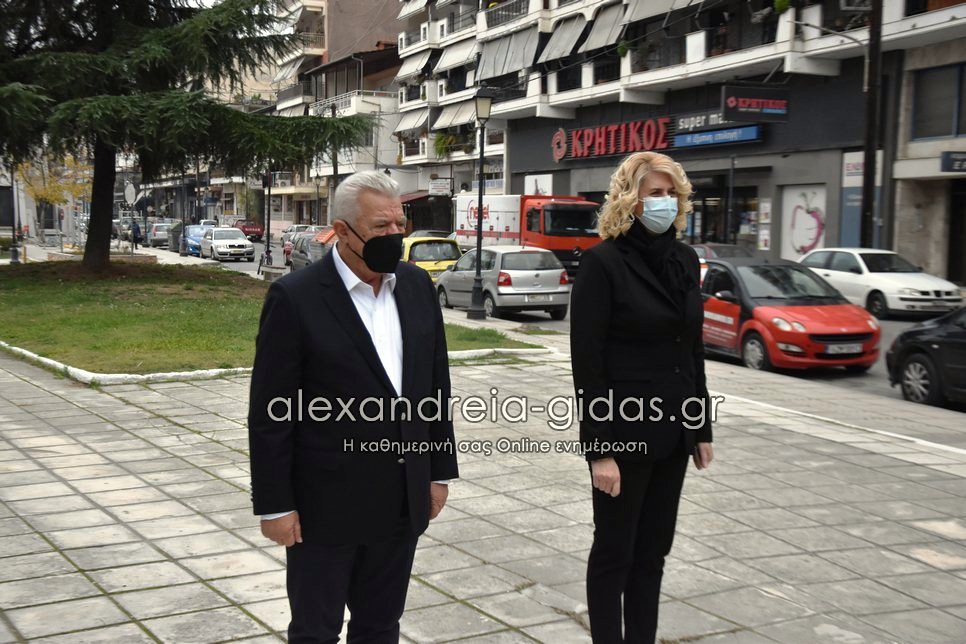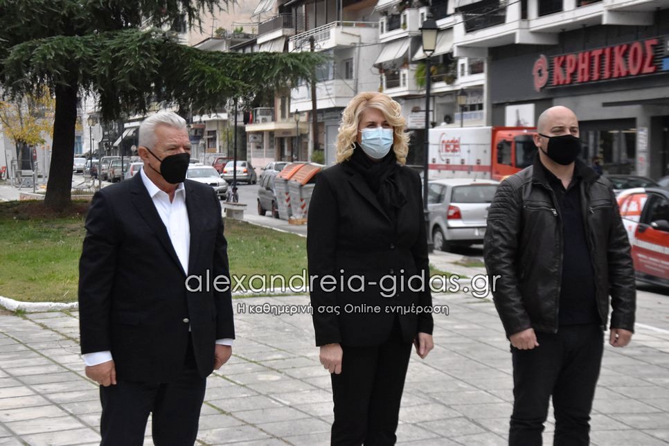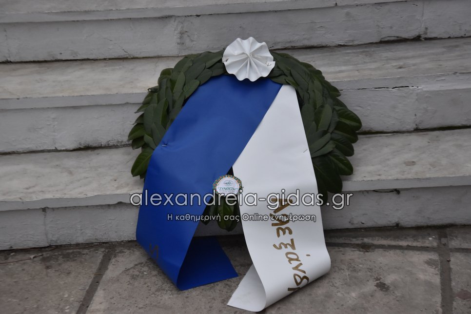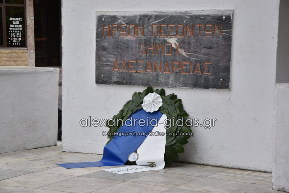 Λόγω των μέτρων για τον κορονοϊό, ο δήμαρχος βρέθηκε στο Ηρώο μαζί με την πρόεδρο του δημοτικού συμβουλίου Όλγα Μοσχοπούλου και τον πρόεδρο της Δημοτικής Ενότητας Αλεξάνδρειας Μένιο Λυμπεράκη.