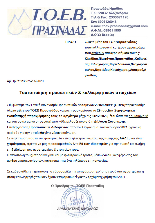 ΑΓΡΟΤΙΚΑ 1 Δεκεμβρίου, 2020 posted by admin Share Σημαντική ανακοίνωση του ΤΟΕΒ Πρασινάδας προς τα μέλη του Από τον ΤΟΕΒ Πρασίναδας ανακοινώθηκαν τα παρακάτω: Αφήστε μια απάντηση Ακύρωση απάντησηςΗ ηλ. διεύθυνση σας δεν δημοσιεύεται. Τα υποχρεωτικά πεδία σημειώνονται με *Σχόλιο * Όνομα Email Ιστότοπος Αποθήκευσε το όνομά μου, email, και τον ιστότοπο μου σε αυτόν τον πλοηγό για την επόμενη φορά που θα σχολιάσω.