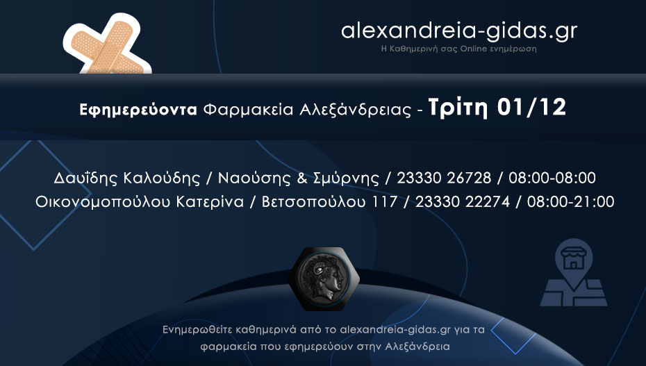 ΦΑΡΜΑΚΕΙΑ 1 Δεκεμβρίου, 2020 posted by admin Share Ποια φαρμακεία εφημερεύουν – διανυκτερεύουν σήμερα Τρίτη στην Αλεξάνδρεια Αλεξάνδρεια: Αφήστε μια απάντηση Ακύρωση απάντησηςΗ ηλ. διεύθυνση σας δεν δημοσιεύεται. Τα υποχρεωτικά πεδία σημειώνονται με *Σχόλιο * Όνομα Email Ιστότοπος Αποθήκευσε το όνομά μου, email, και τον ιστότοπο μου σε αυτόν τον πλοηγό για την επόμενη φορά που θα σχολιάσω.