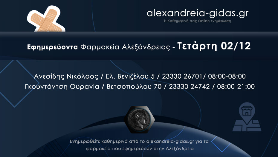 ΦΑΡΜΑΚΕΙΑ 2 Δεκεμβρίου, 2020 posted by admin Share Ποια φαρμακεία εφημερεύουν – διανυκτερεύουν σήμερα Τετάρτη στην Αλεξάνδρεια Αλεξάνδρεια: Αφήστε μια απάντηση Ακύρωση απάντησηςΗ ηλ. διεύθυνση σας δεν δημοσιεύεται. Τα υποχρεωτικά πεδία σημειώνονται με *Σχόλιο * Όνομα Email Ιστότοπος Αποθήκευσε το όνομά μου, email, και τον ιστότοπο μου σε αυτόν τον πλοηγό για την επόμενη φορά που θα σχολιάσω.