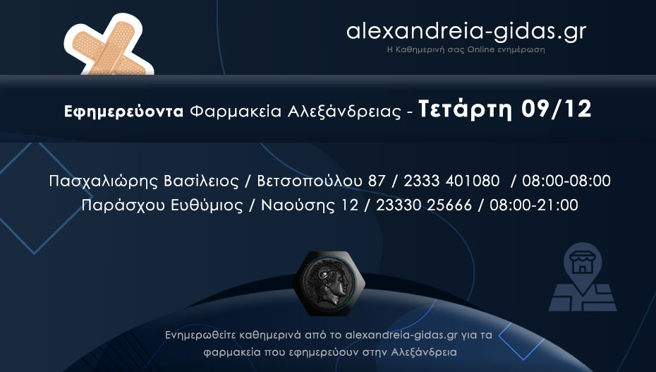 ΦΑΡΜΑΚΕΙΑ 9 Δεκεμβρίου, 2020 posted by admin Share Ποια φαρμακεία εφημερεύουν – διανυκτερεύουν σήμερα Τετάρτη στην Αλεξάνδρεια Αλεξάνδρεια: Αφήστε μια απάντηση Ακύρωση απάντησηςΗ ηλ. διεύθυνση σας δεν δημοσιεύεται. Τα υποχρεωτικά πεδία σημειώνονται με *Σχόλιο * Όνομα Email Ιστότοπος Αποθήκευσε το όνομά μου, email, και τον ιστότοπο μου σε αυτόν τον πλοηγό για την επόμενη φορά που θα σχολιάσω.