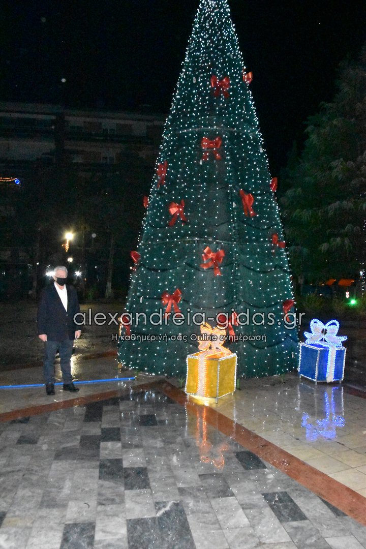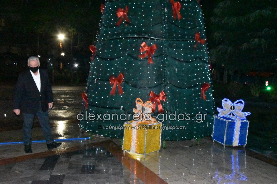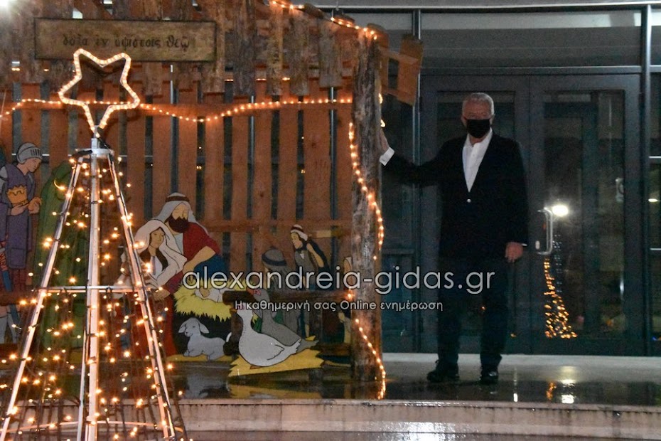 Το βράδυ της Τετάρτης 9 Δεκεμβρίου 2020 ο δήμαρχος Αλεξάνδρειας Παναγιώτης Γκυρίνης άναψε το Χριστουγεννιάτικο δέντρο μπροστά στο Πνευματικό Κέντρο της πόλης μας.
