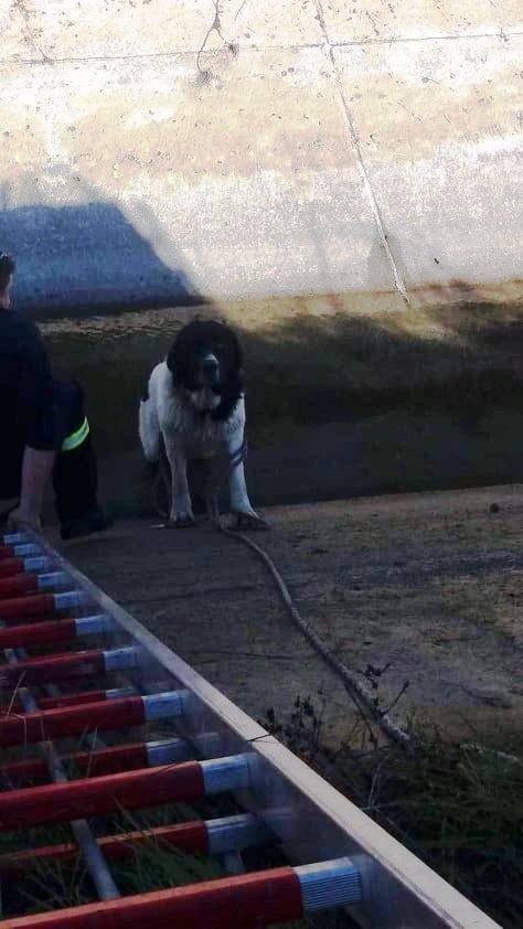 Η πυροσβεστική υπηρεσία έσωσε τον μεγαλόσωμο σκύλο που ήταν μέσα στο κανάλι.