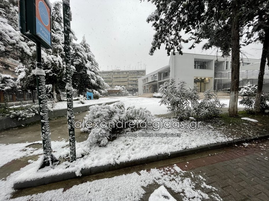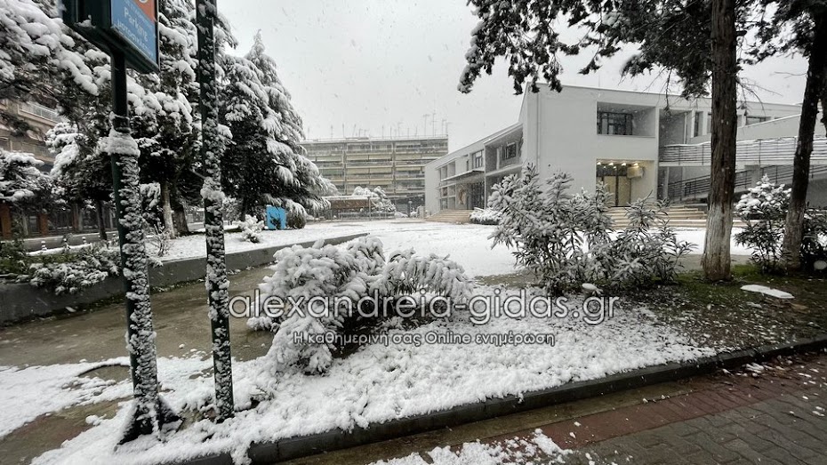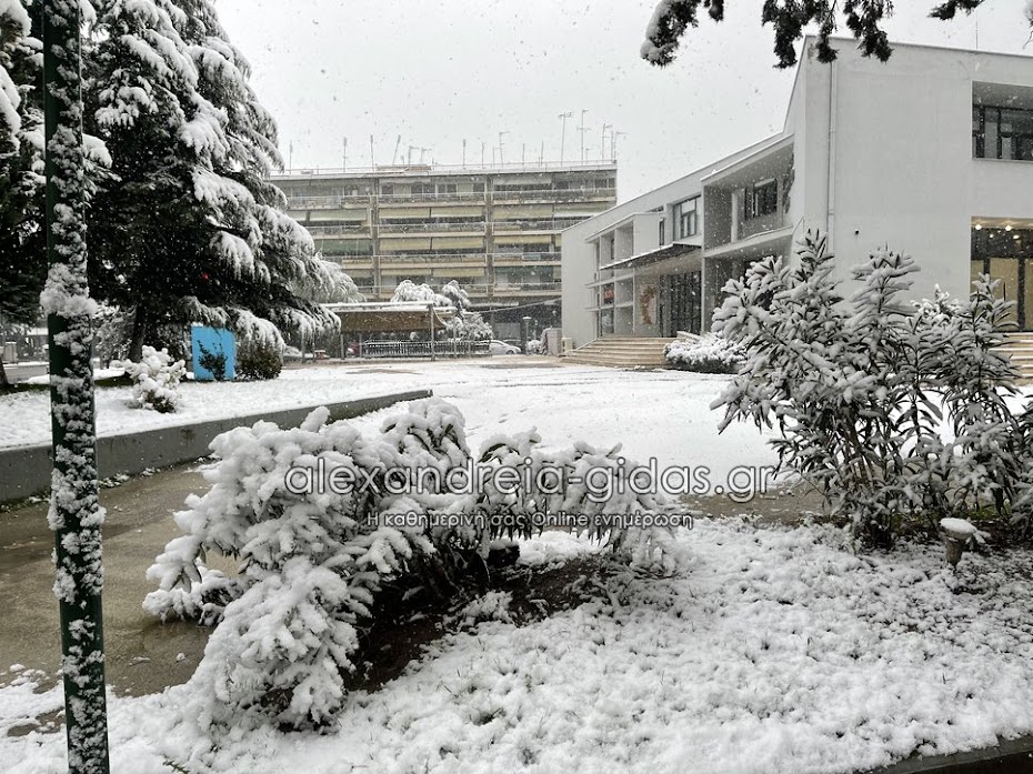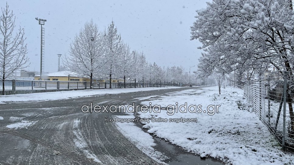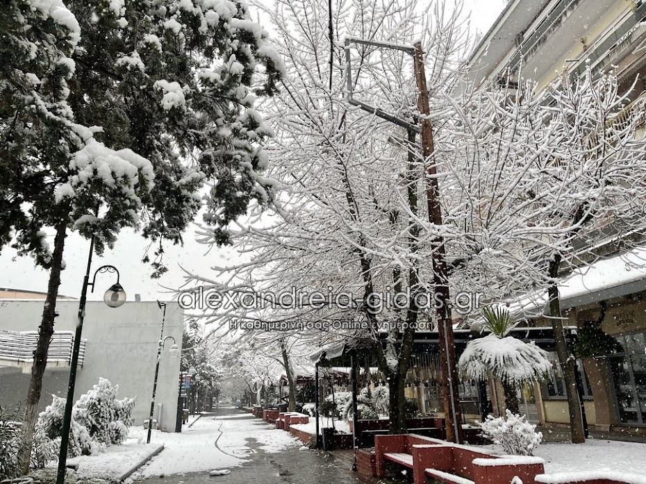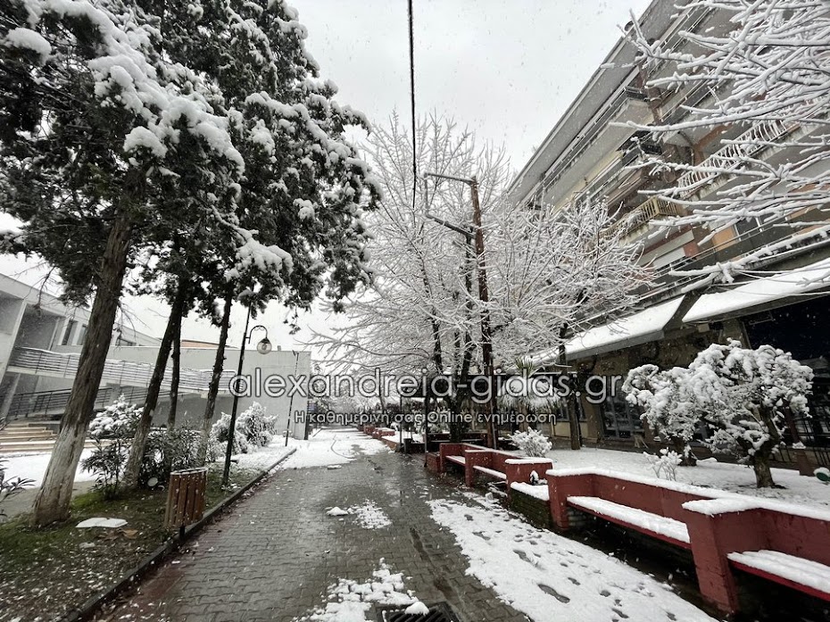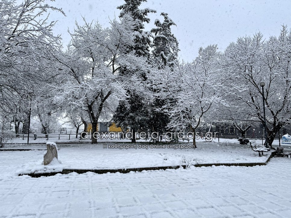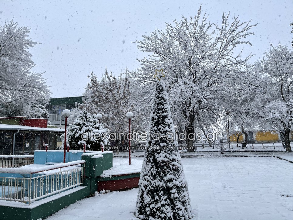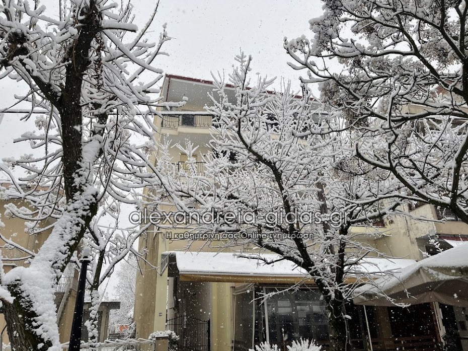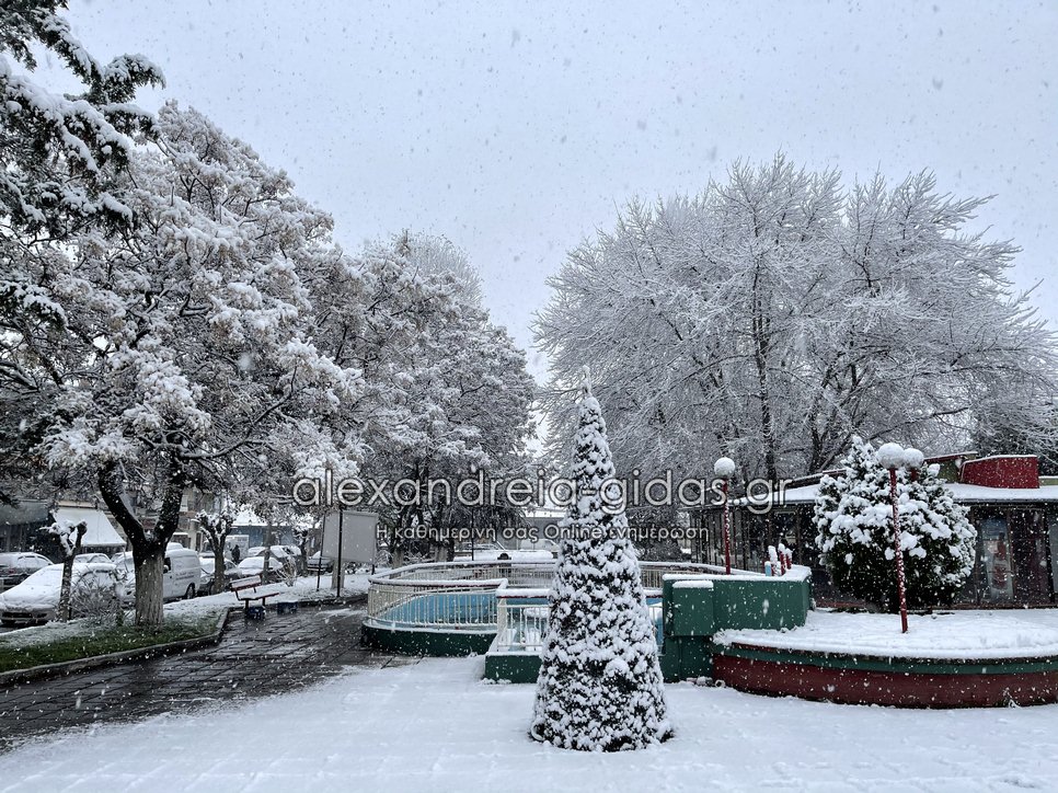 Λευκό ξύπνημα το πρωί του Σαββάτου 16 Ιανουαρίου 2021 και για την πόλη της Αλεξάνδρειας.